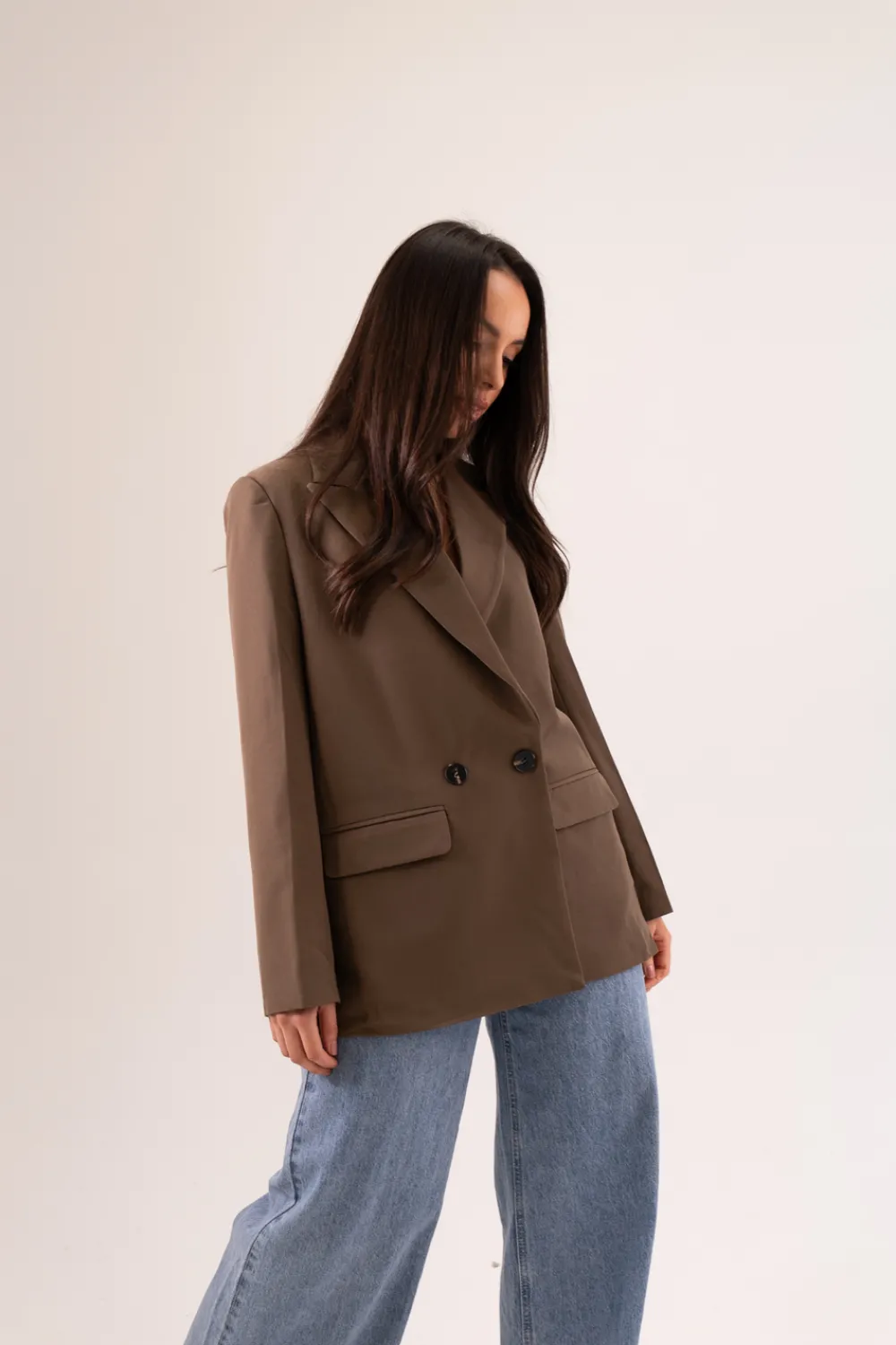 The Nadia Blazer in Coffee is a must-have wardrobe staple. With its classic collar, lined interior, faux pockets, and double button front, this blazer provides both style and functionality. The rich coffee colour adds a touch of sophistication to any outfit. Elevate your professional look with this timeless piece.
