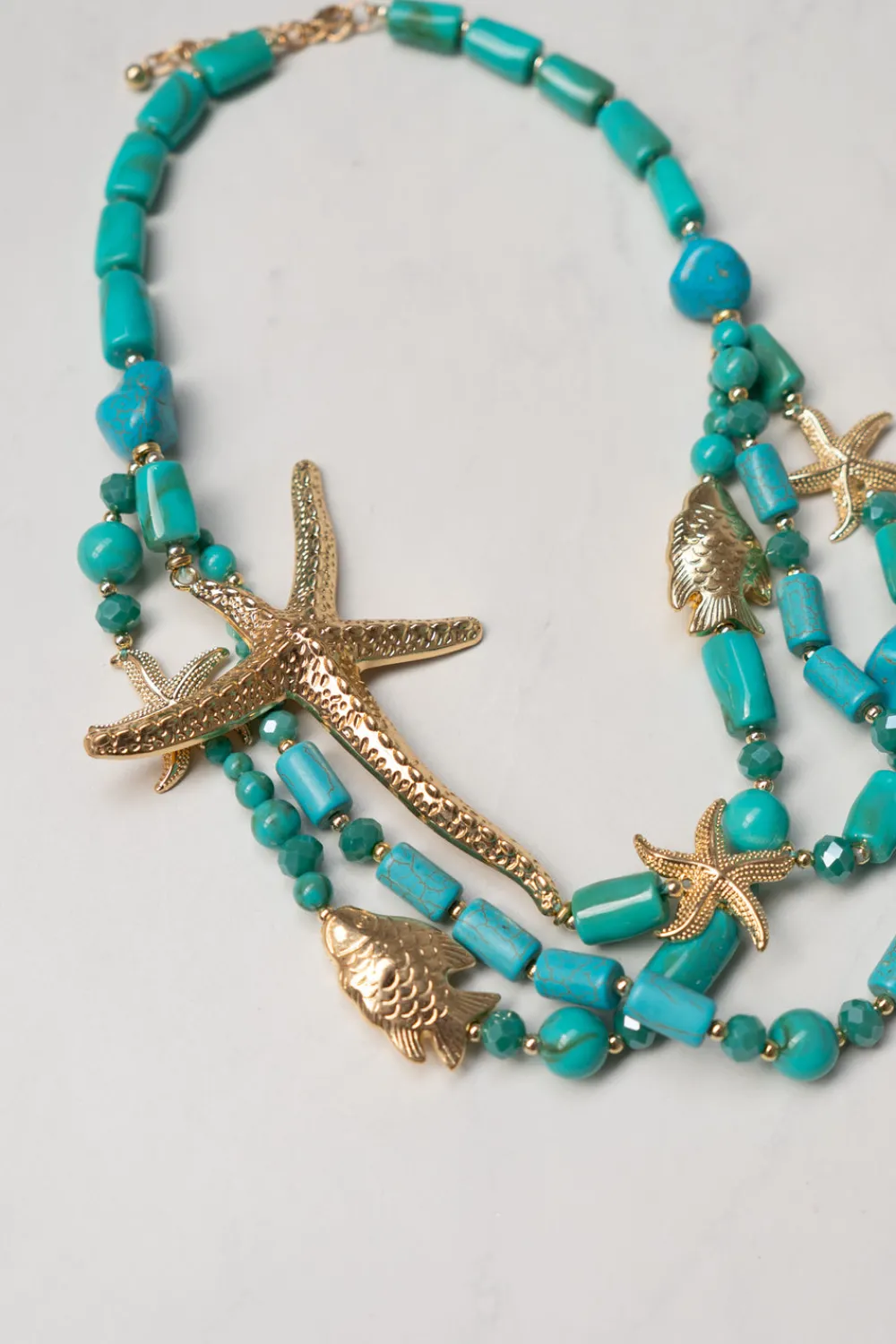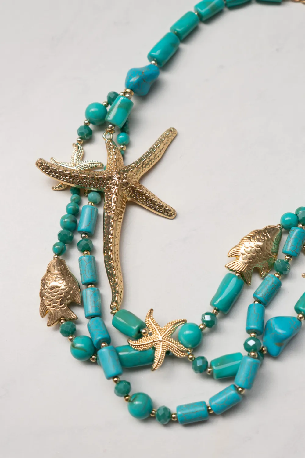This stunning necklace features a unique design of gold coloured fish and starfish, adorned with beautiful red beads on multiple strands. Made with durable stainless steel and an adjustable clasp closure, it is suitable for any size. Add a touch of ocean-inspired elegance to any outfit.