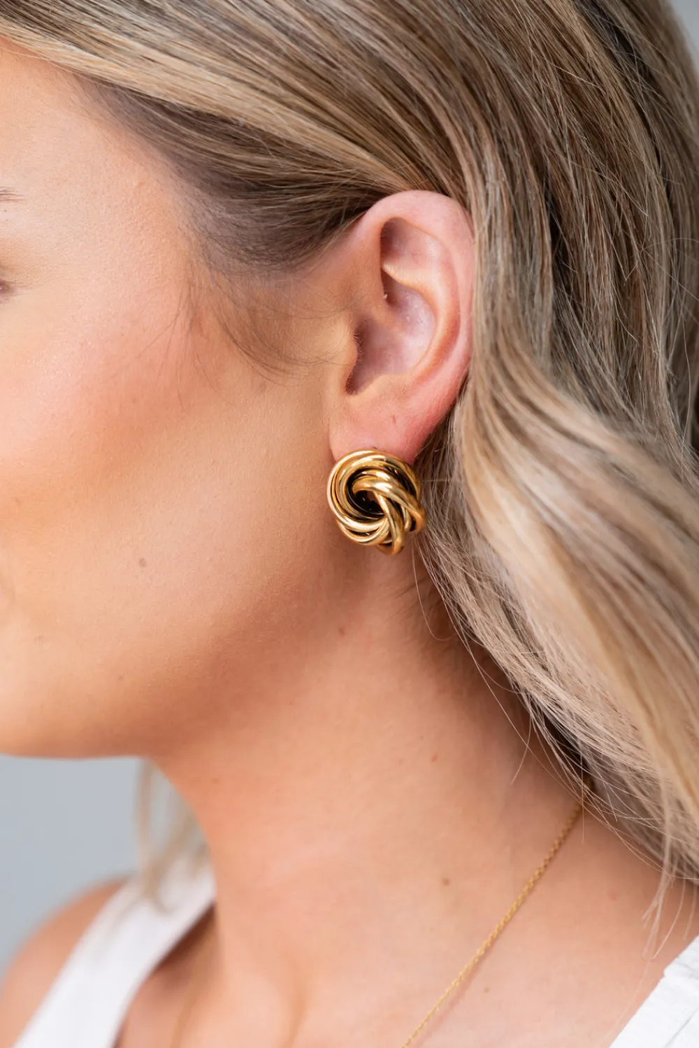 These sophisticated silver-toned stud earrings showcase a meticulously crafted layered knot design. Precision-made from durable stainless steel with a 2.3cm diameter, the one-size styling provides versatile elegance suitable for both casual and formal occasions.