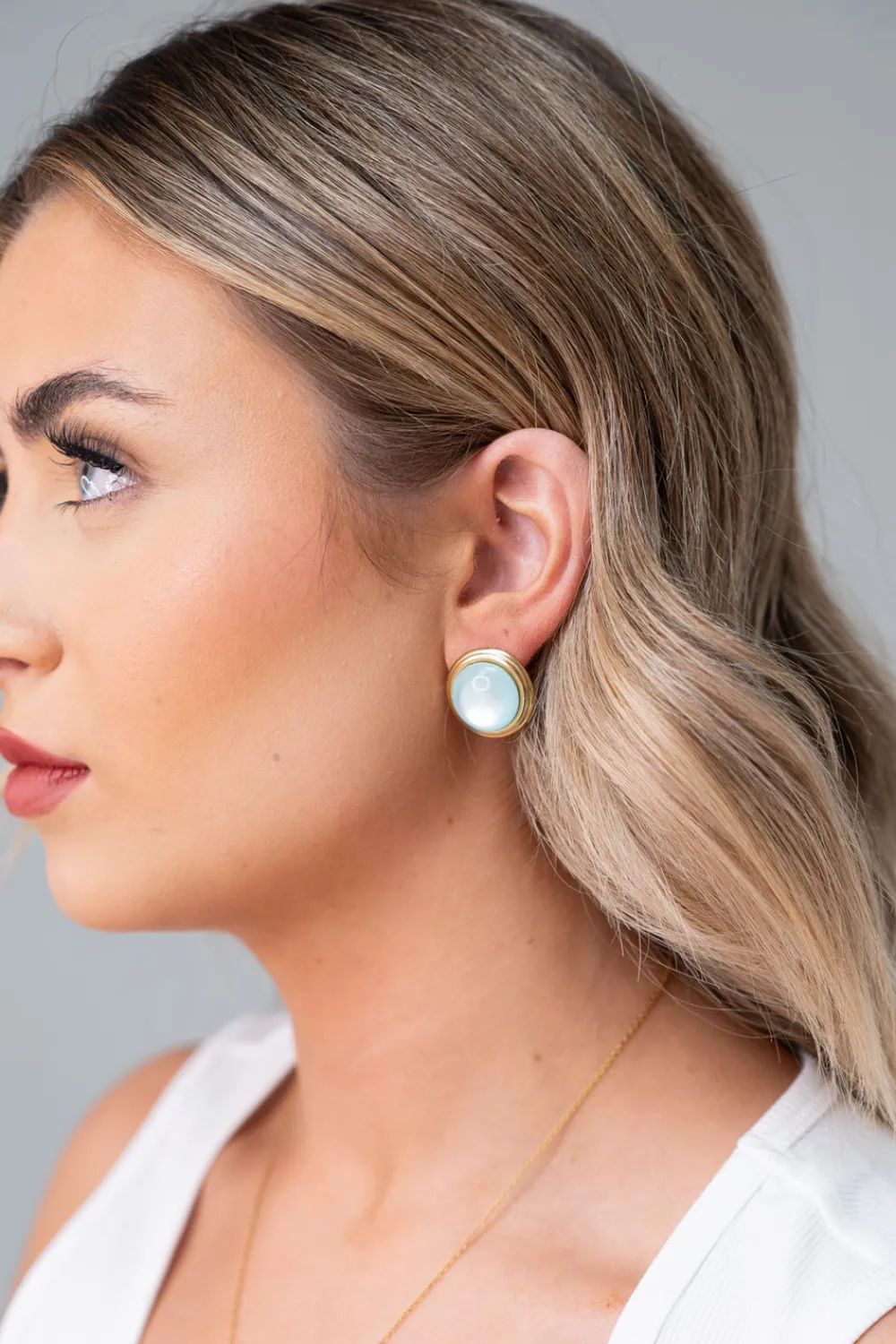 Precision-crafted round stud earrings featuring luminous blue stones set in gold-toned stainless steel. These Olive earrings combine contemporary elegance with exceptional durability, offering a versatile accessory suitable for both everyday wear and special occasions. The one-size design ensures a comfortable fit, while the premium materials provide lasting quality.