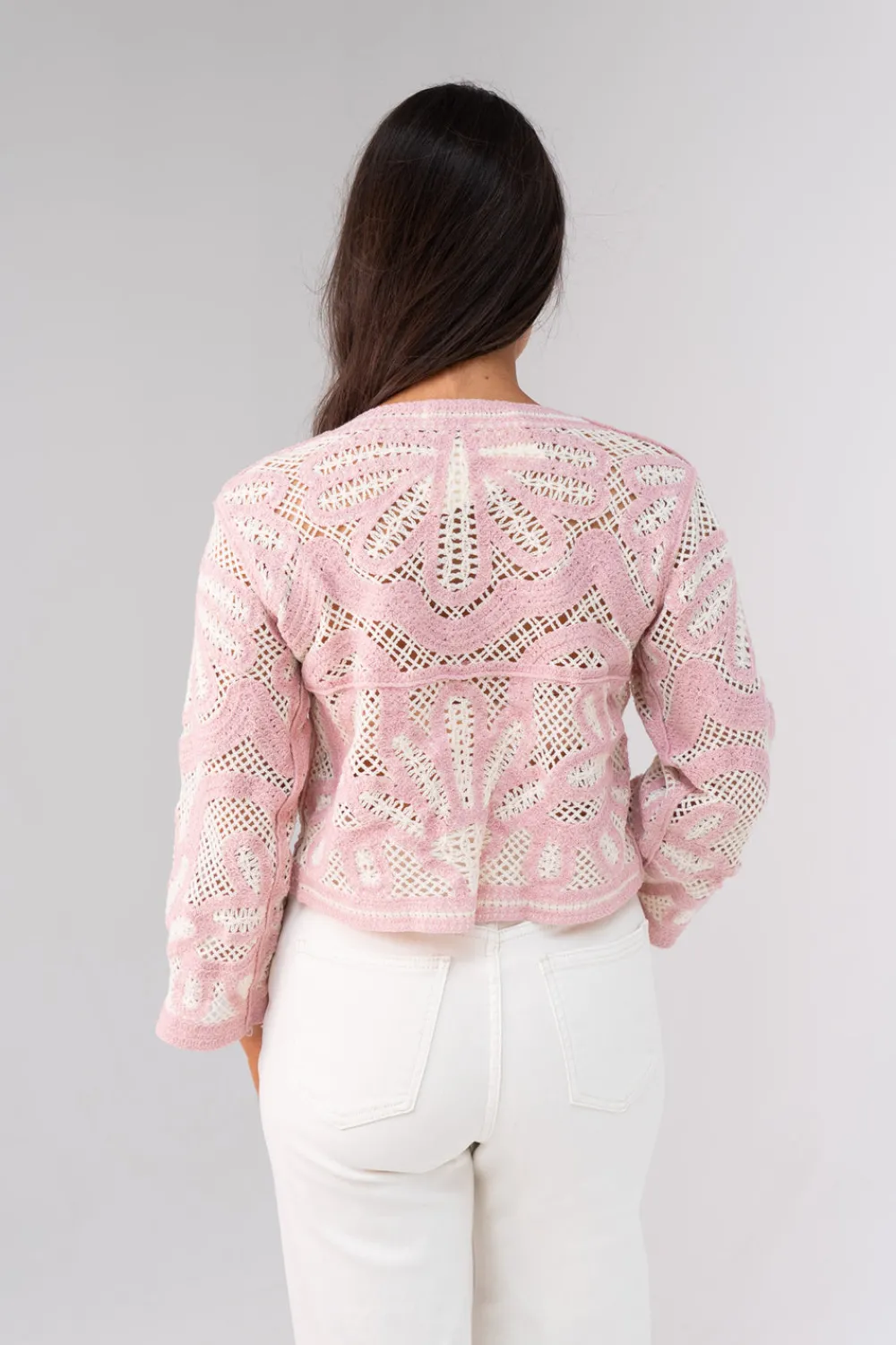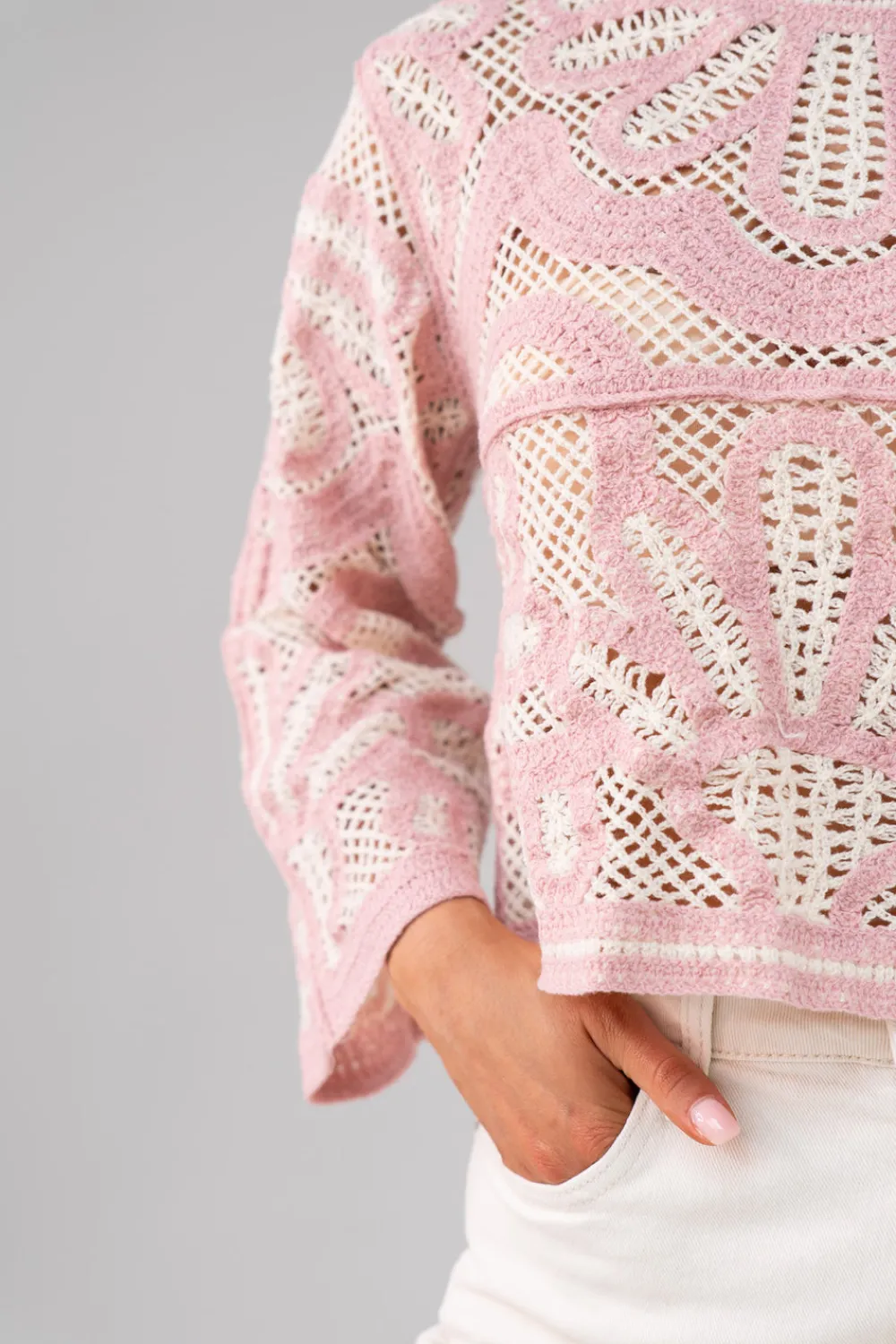 The Ella Contrast Crochet Jumper in Black is a versatile piece that combines style and comfort. With its round neck and long sleeves, it offers a chic look for any occasion. The crop style and one size fitting makes it a perfect choice for sizes 8-14. The added crochet and contrast black detailing add a touch of elegance.