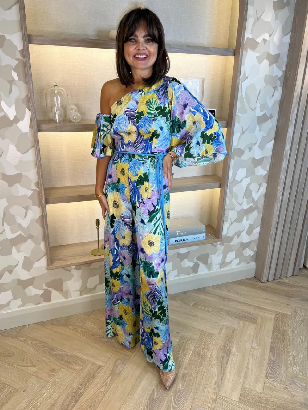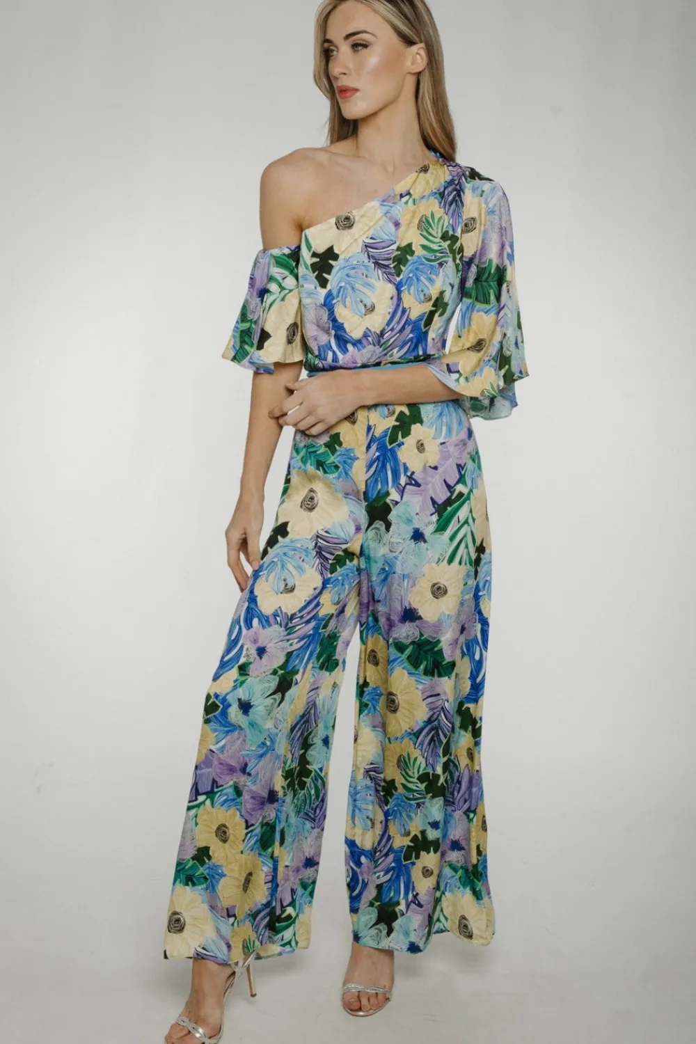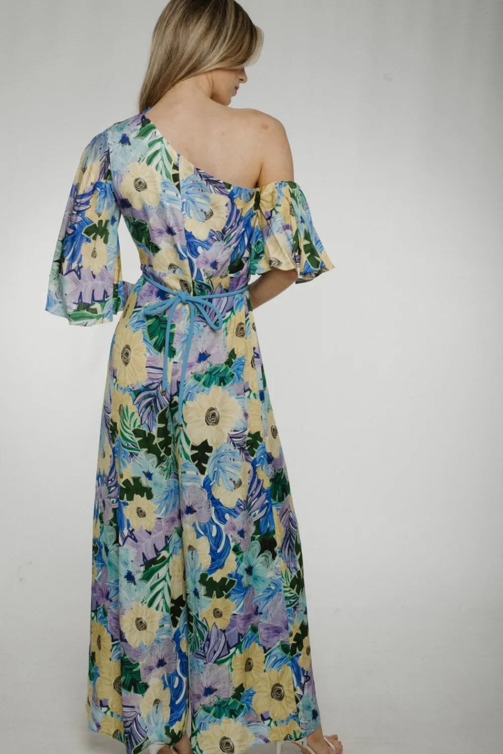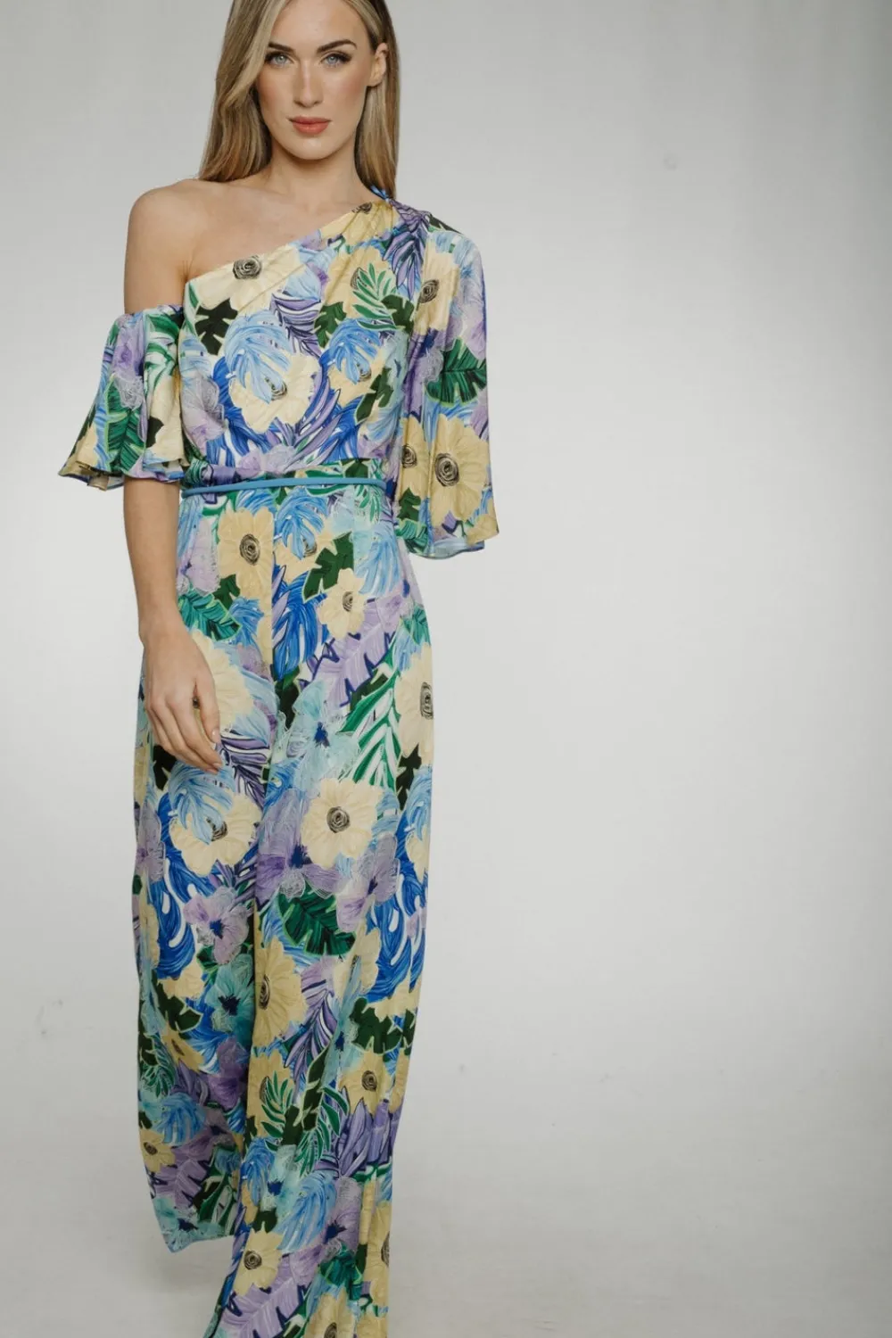 Asymmetric neckline Wide leg Detachable belt
