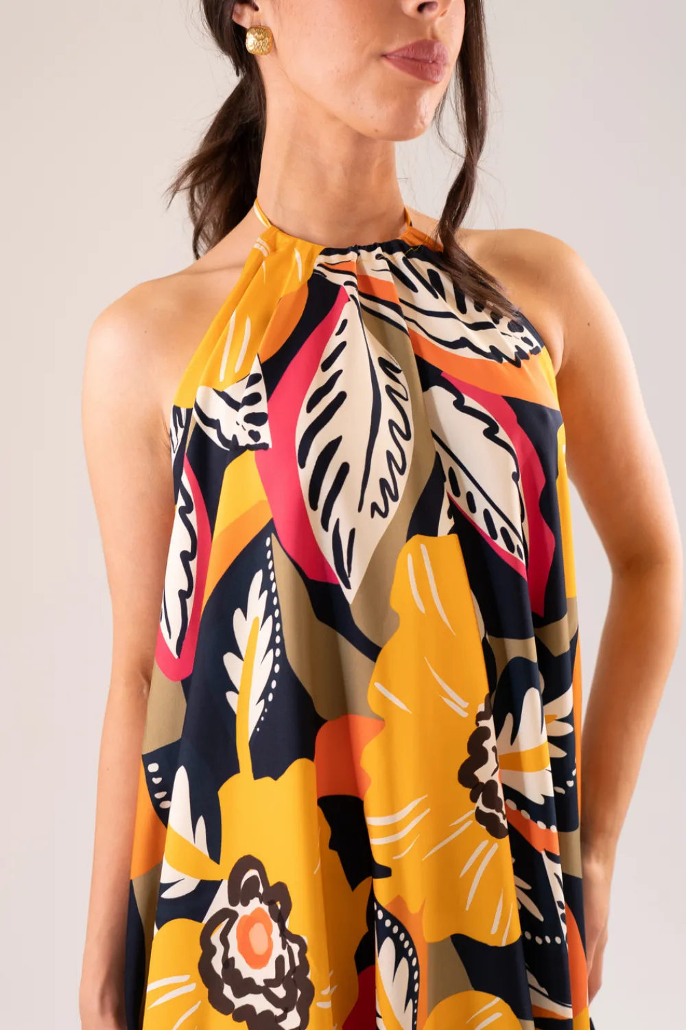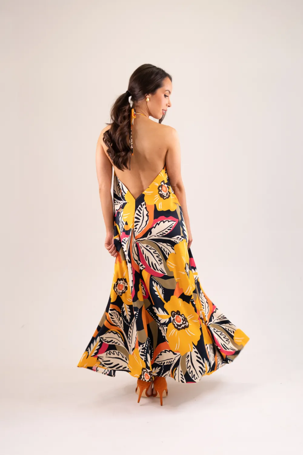 Experience ultimate comfort and style with the Becca Halter Maxi Dress. Featuring a yellow mix floral print, this maxi dress offers a straight, loose cut for a relaxed fit. The halter neck and off-shoulder design add a touch of elegance, while the adjustable tie at the back provides a customisable fit. Perfect for any occasion, this dress will be sure to turn heads.