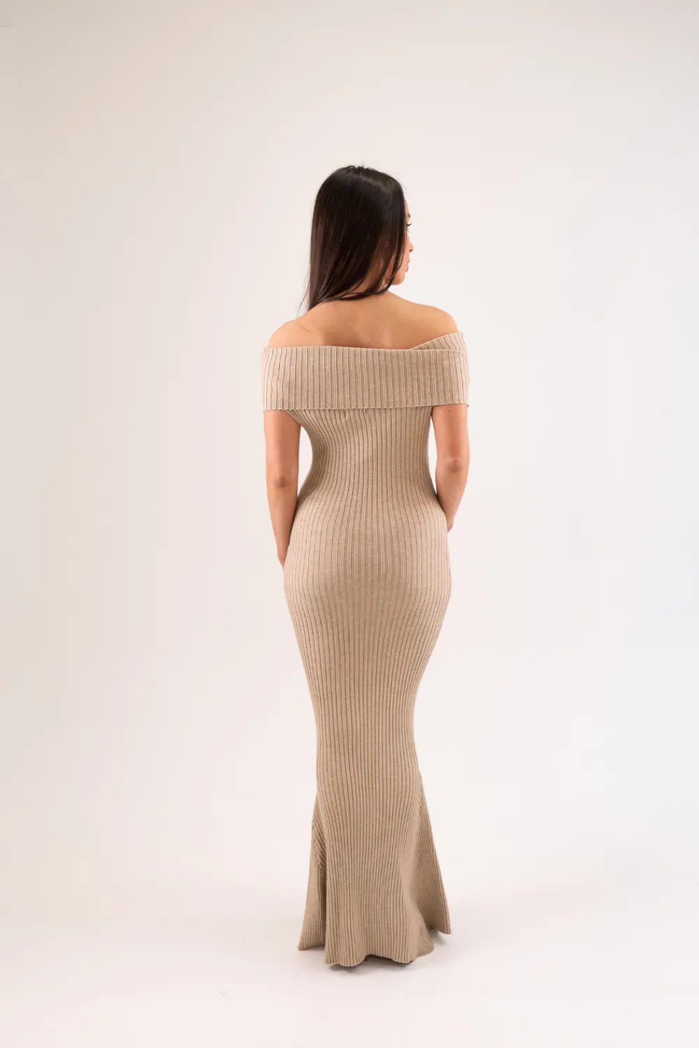 Expertly crafted with a figure-flattering Bardot style, the Caitlyn Knit Dress features a soft, delicate fine knit in a stunning shade of blue. With its ribbed design, this maxi dress provides both comfort and style in one versatile piece. Perfect for any occasion, from casual to formal.