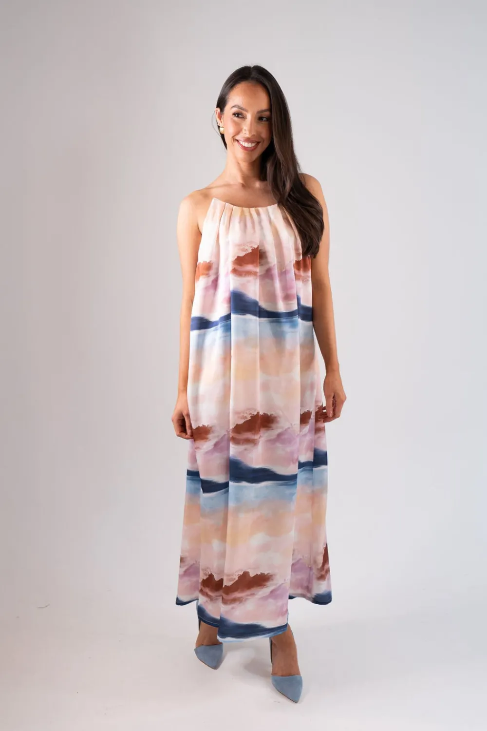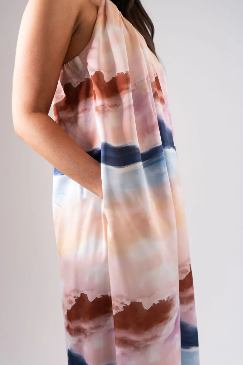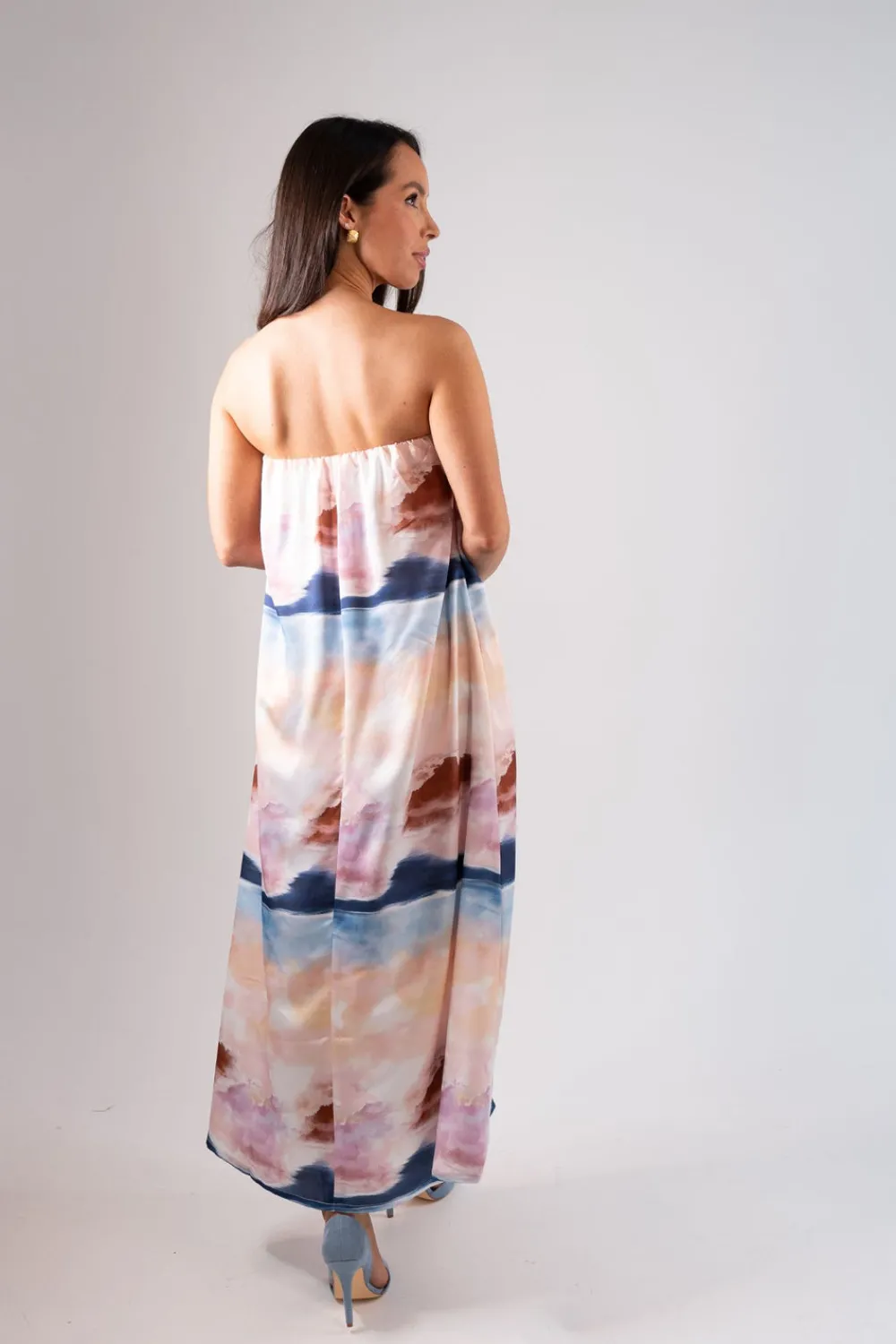 This Jasmine Watercolour Print Dress in Pink Mix is a stylish choice for any occasion. The elasticated back provides a comfortable and flattering fit, while the pockets are a practical addition. The maxi length and strapless design add a touch of elegance to the pink mix watercolour print. Perfect for a formal event or a day out.