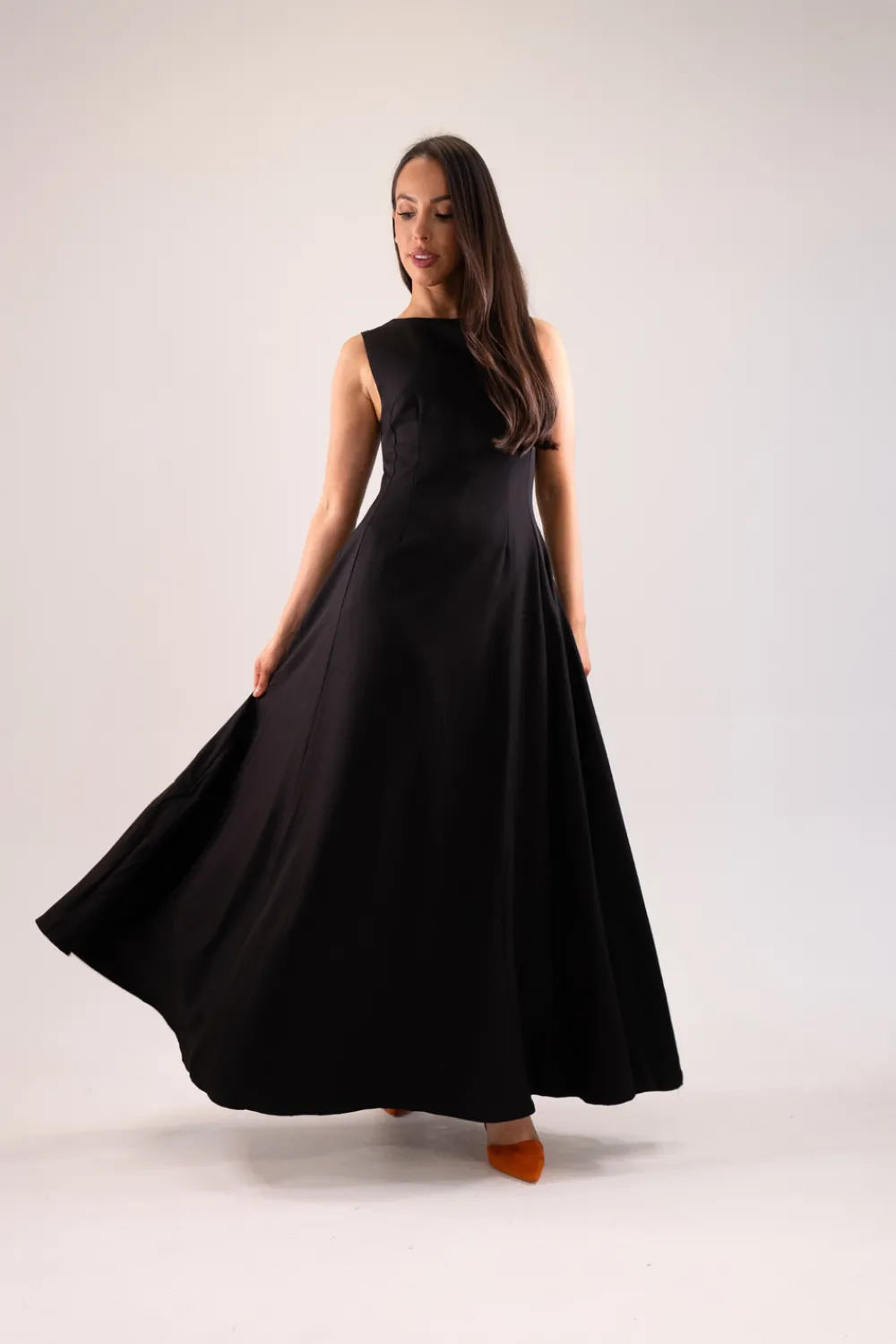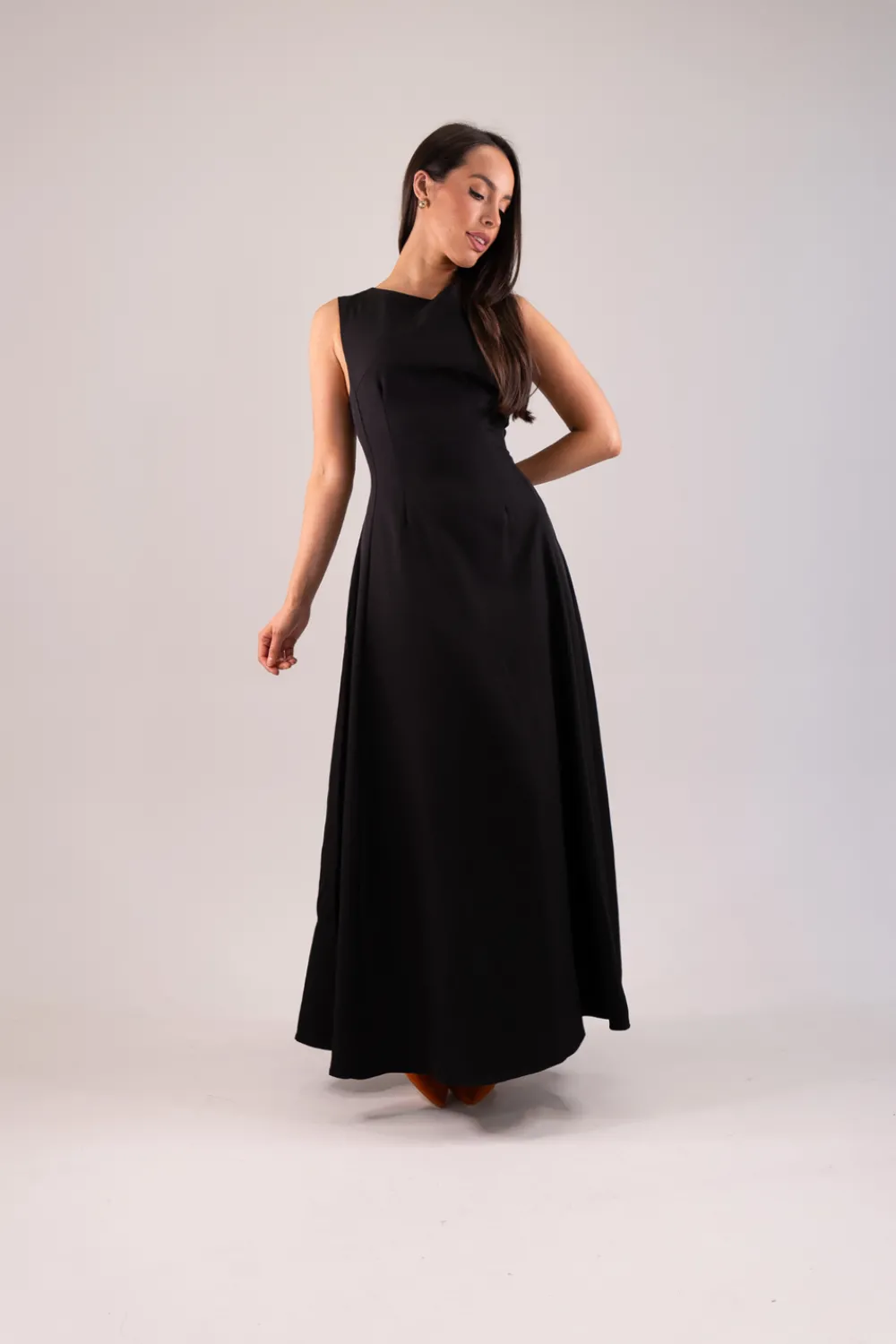 Expertly crafted for versatile style and comfort, the Willow Sleeveless Dress in Black is a must-have in any wardrobe. Featuring a sleeveless design and maxi length with a full skirt, this dress effortlessly combines elegance and practicality. The pleated detail on the bodice adds a touch of sophistication to this timeless piece.