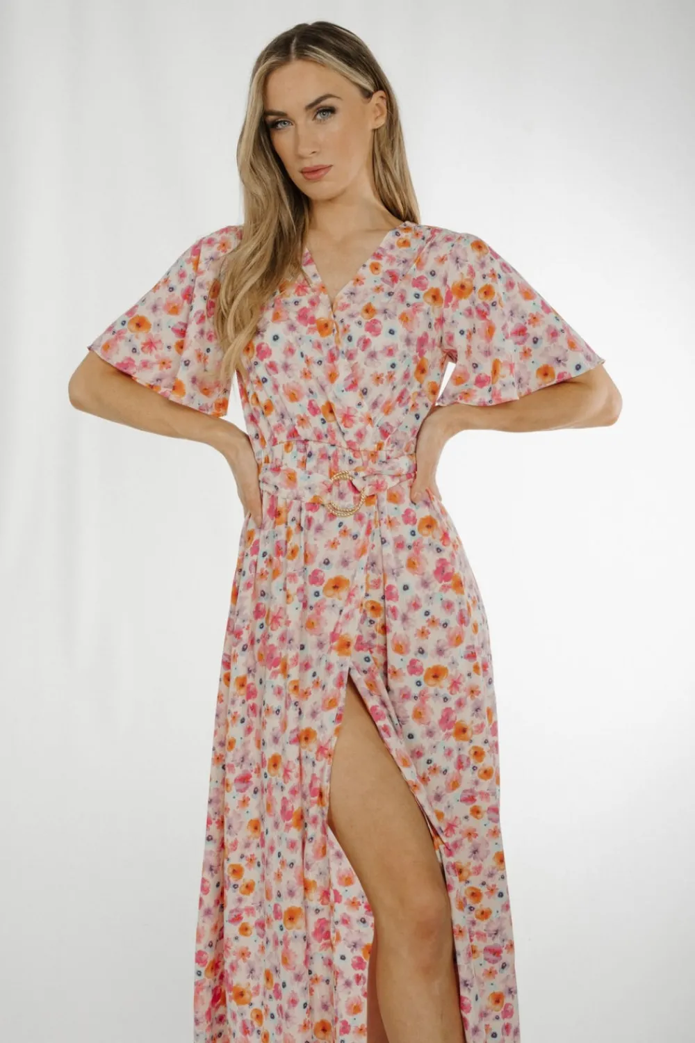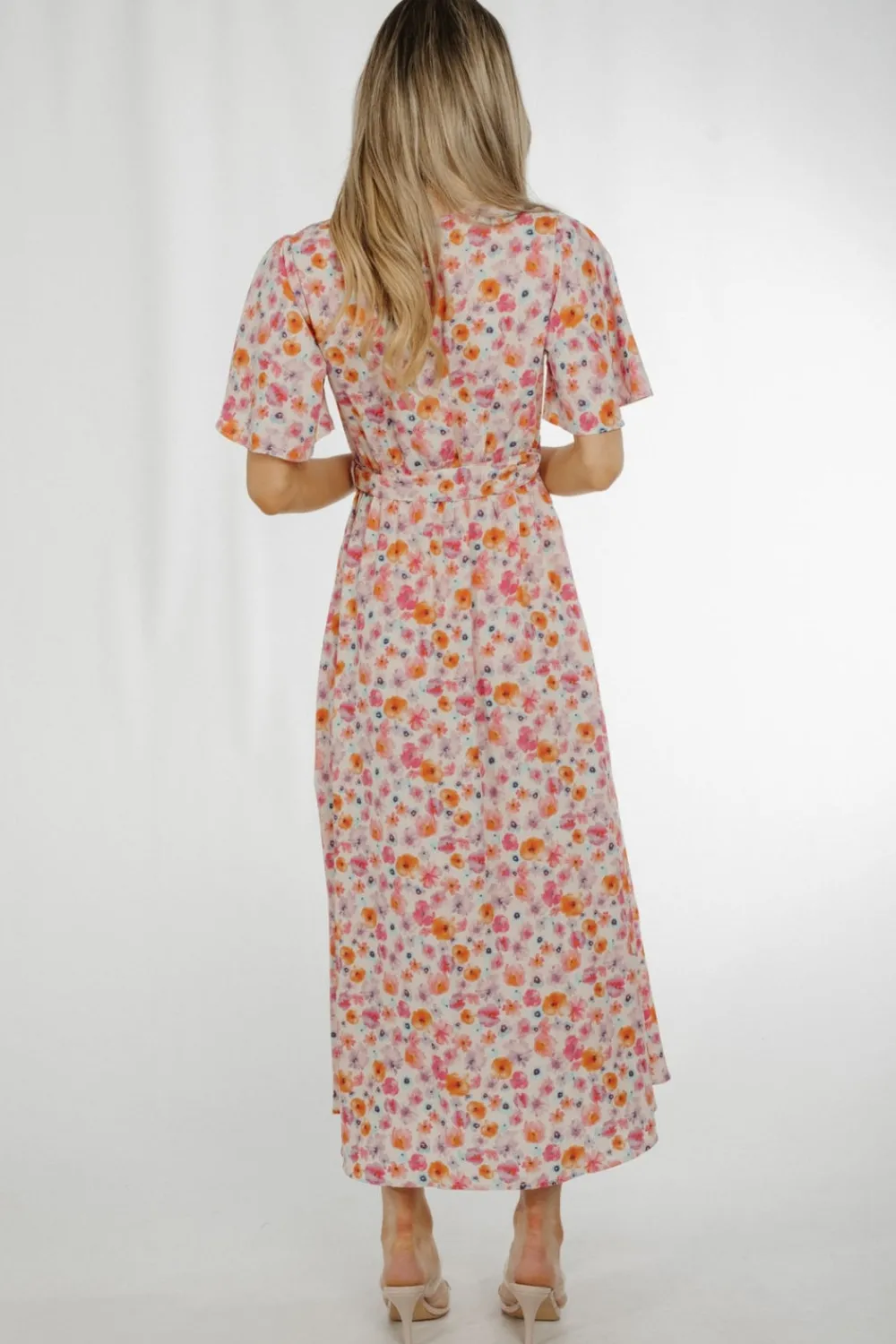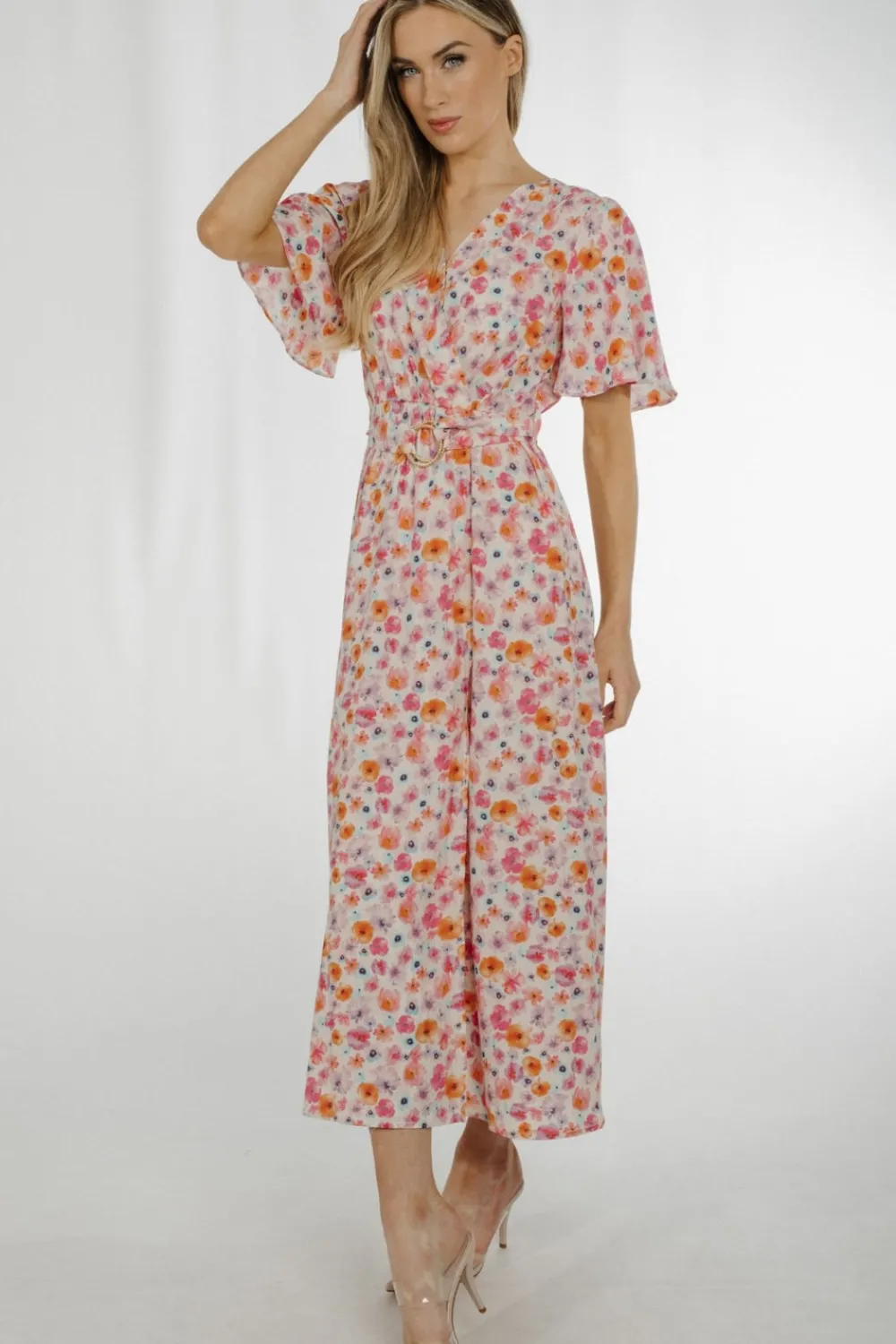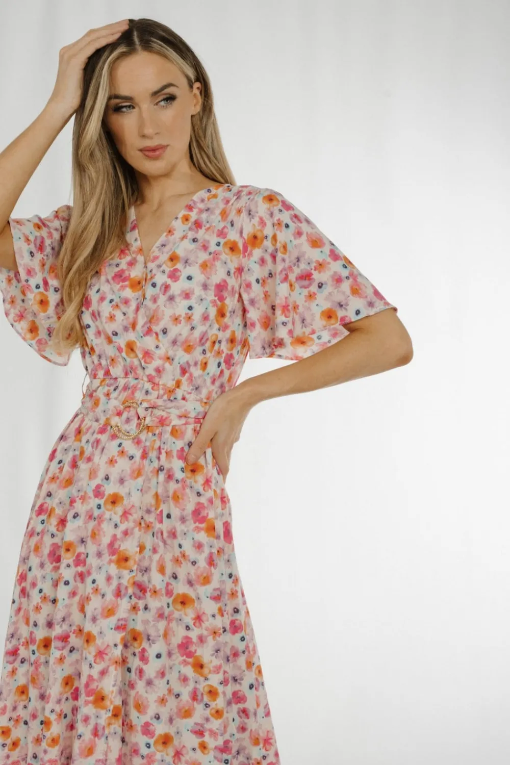 Wrap Style Floral Print Pastel Mix Belted V-Neck