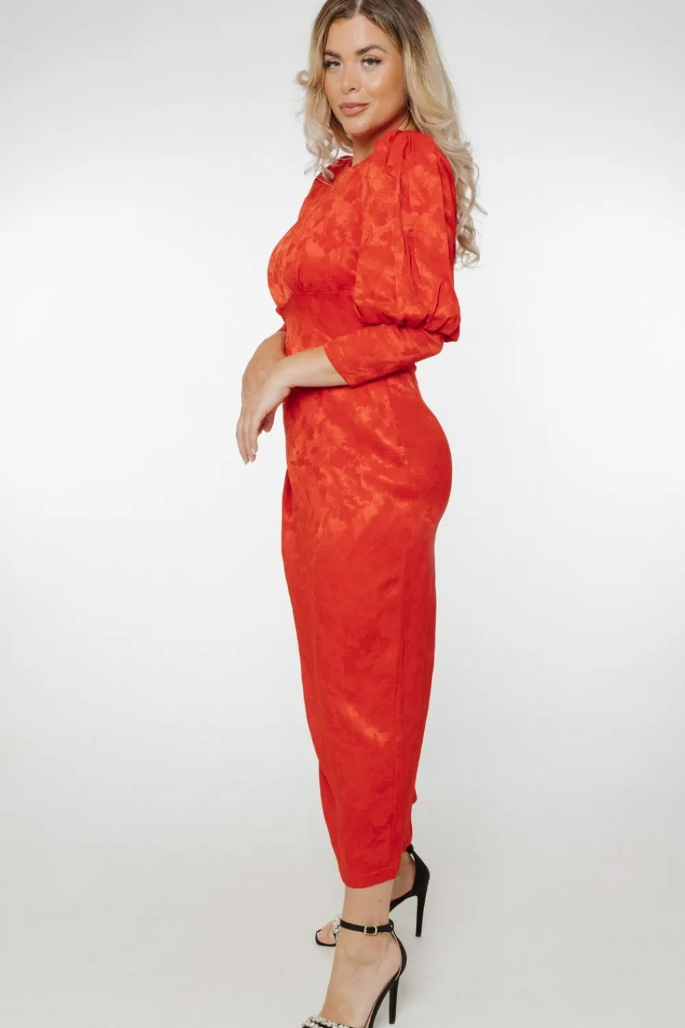 Expertly crafted with a bold red print, the Eva Puff Sleeve Dress combines fashion and functionality. The side split and ruching detail add dimension to this statement piece, while the dramatic puff sleeves add a touch of elegance. Elevate your style with this eye-catching dress.
