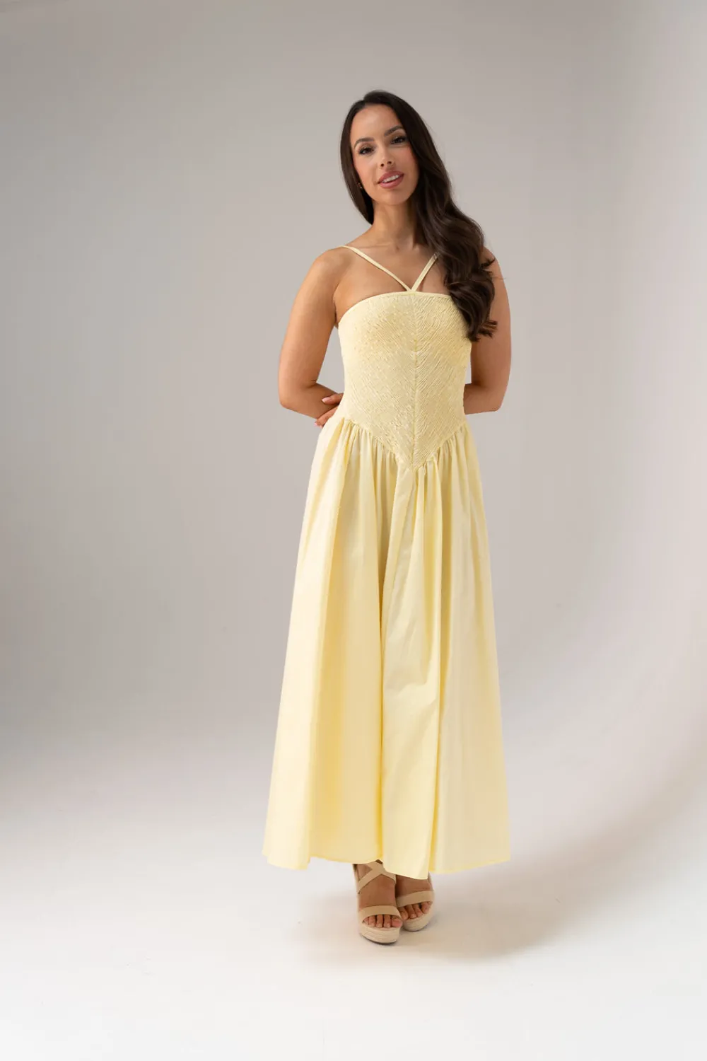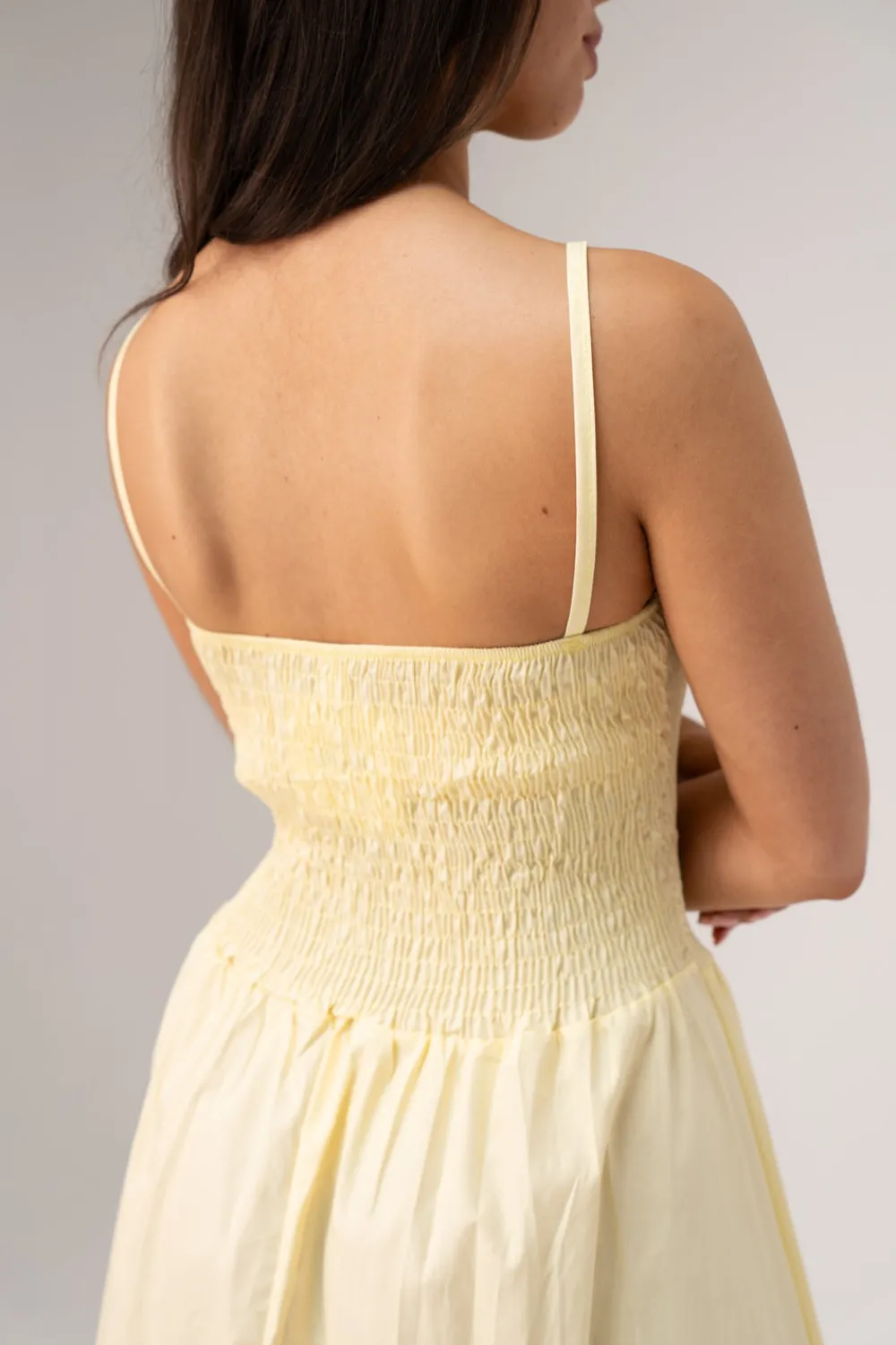 This Indie Strappy Dress in Lemon features fine straps and an elasticated bodice for a comfortable, flexible fit. Crafted from breathable cotton, it offers a fuller skirt that drapes elegantly. Designed as one size fitting UK 8-14, this dress combines style and versatility for warm-weather occasions.