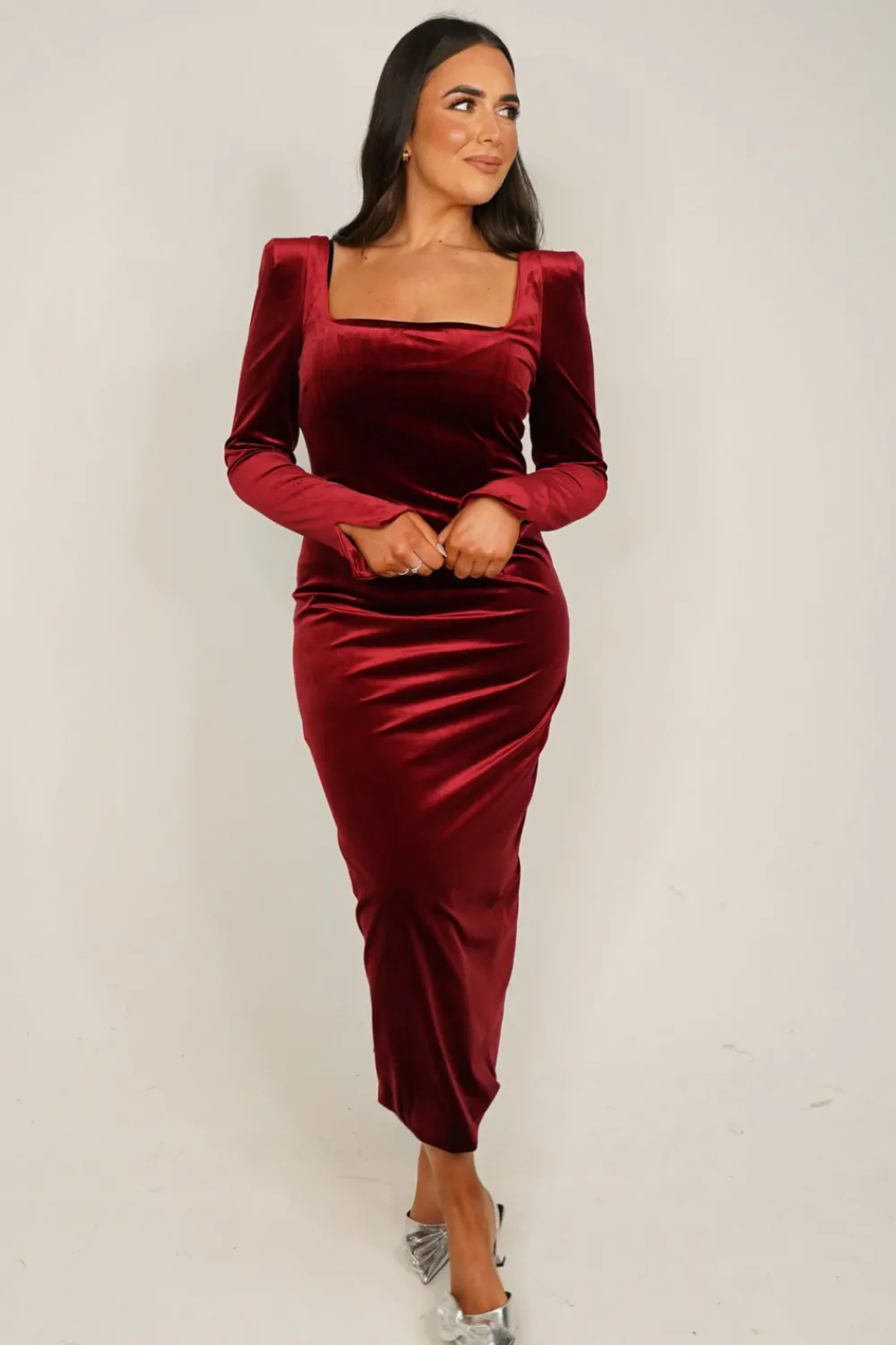 Introducing Love Laura Velvet Dress In Black, the epitome of luxury and style. Made with lush black velvet, this midi dress features a flattering square neckline, long sleeves with padded shoulders, and a back zip for easy wear. Perfectly lined and finished with a back split, this dress will elevate any occasion. Shoulder to hem measures 130cm for a sophisticated and elegant look.
