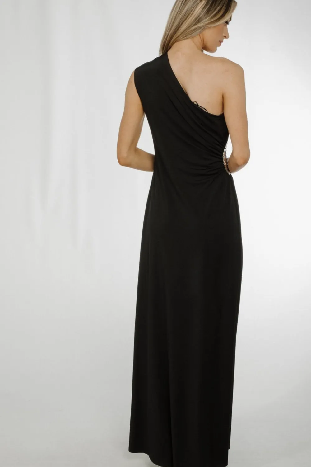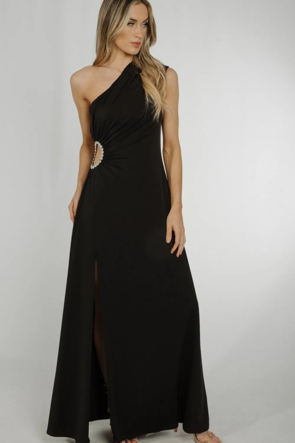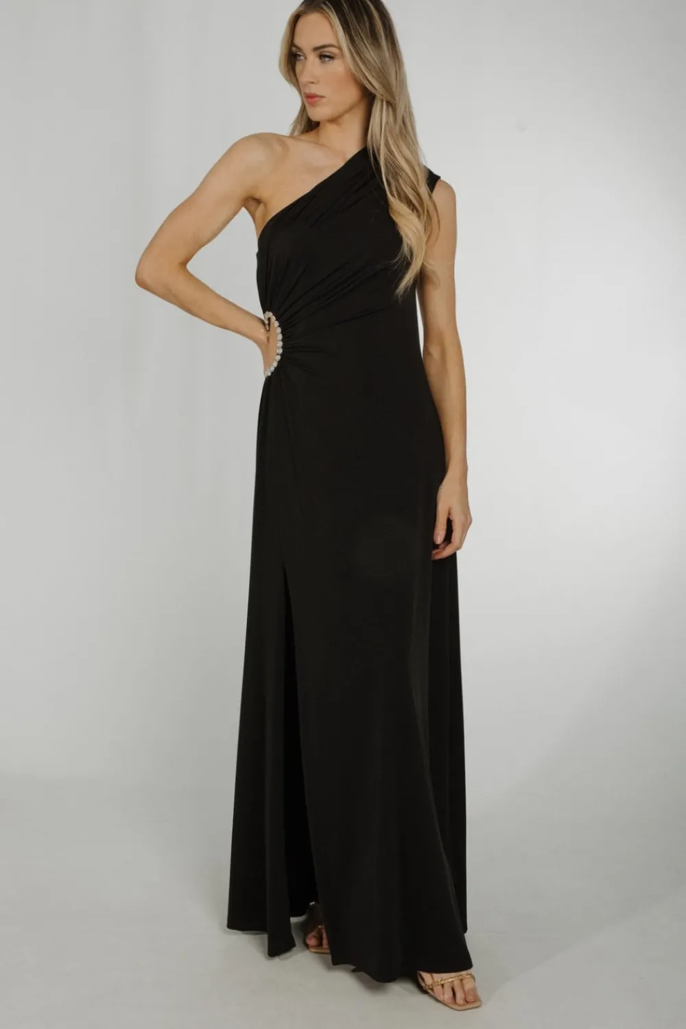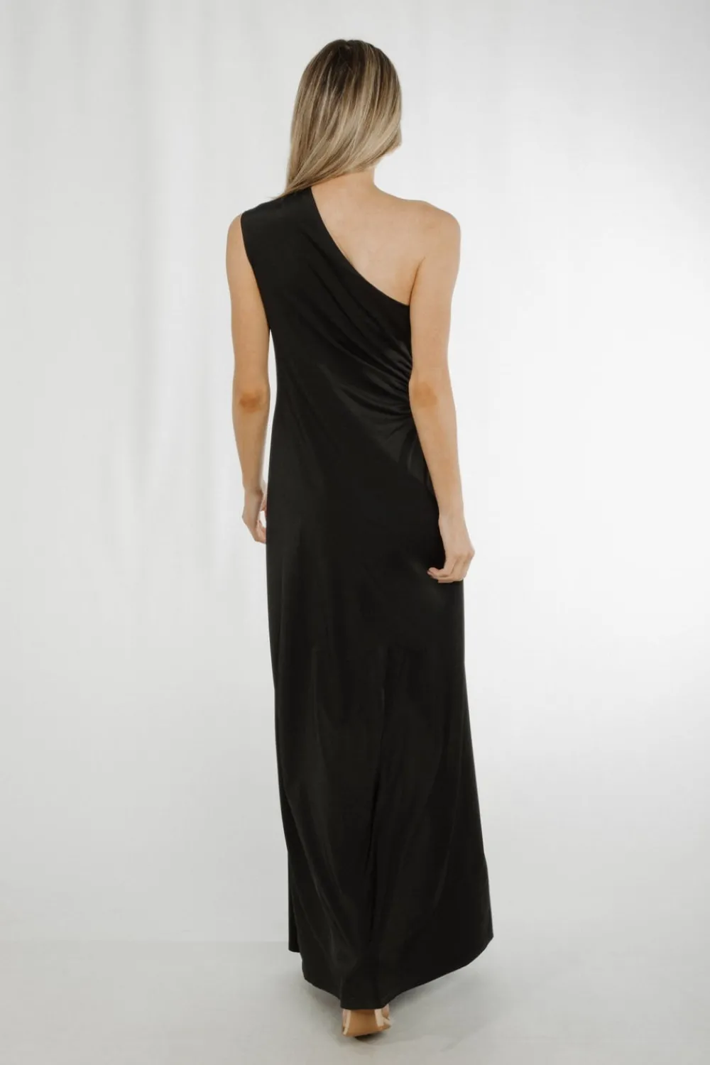Expertly designed for a sophisticated and chic look, the Alana One Shoulder Ruched Dress is a must-have for any fashion-forward woman. With its one shoulder design, cream color, and unique side split, this dress is a true statement piece. The ruched detailing and diamante cut out add a touch of glamour, making it perfect for any special occasion.