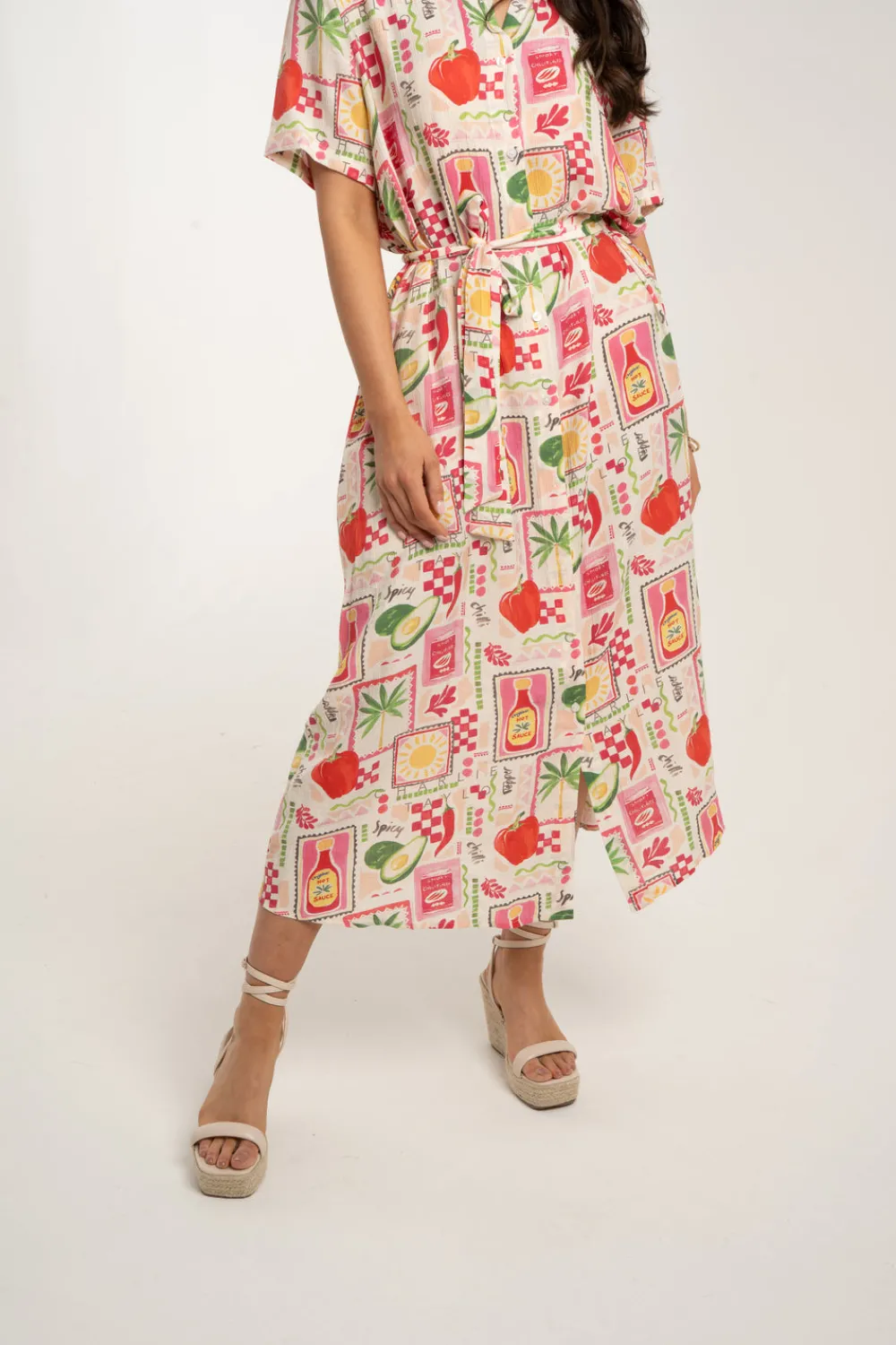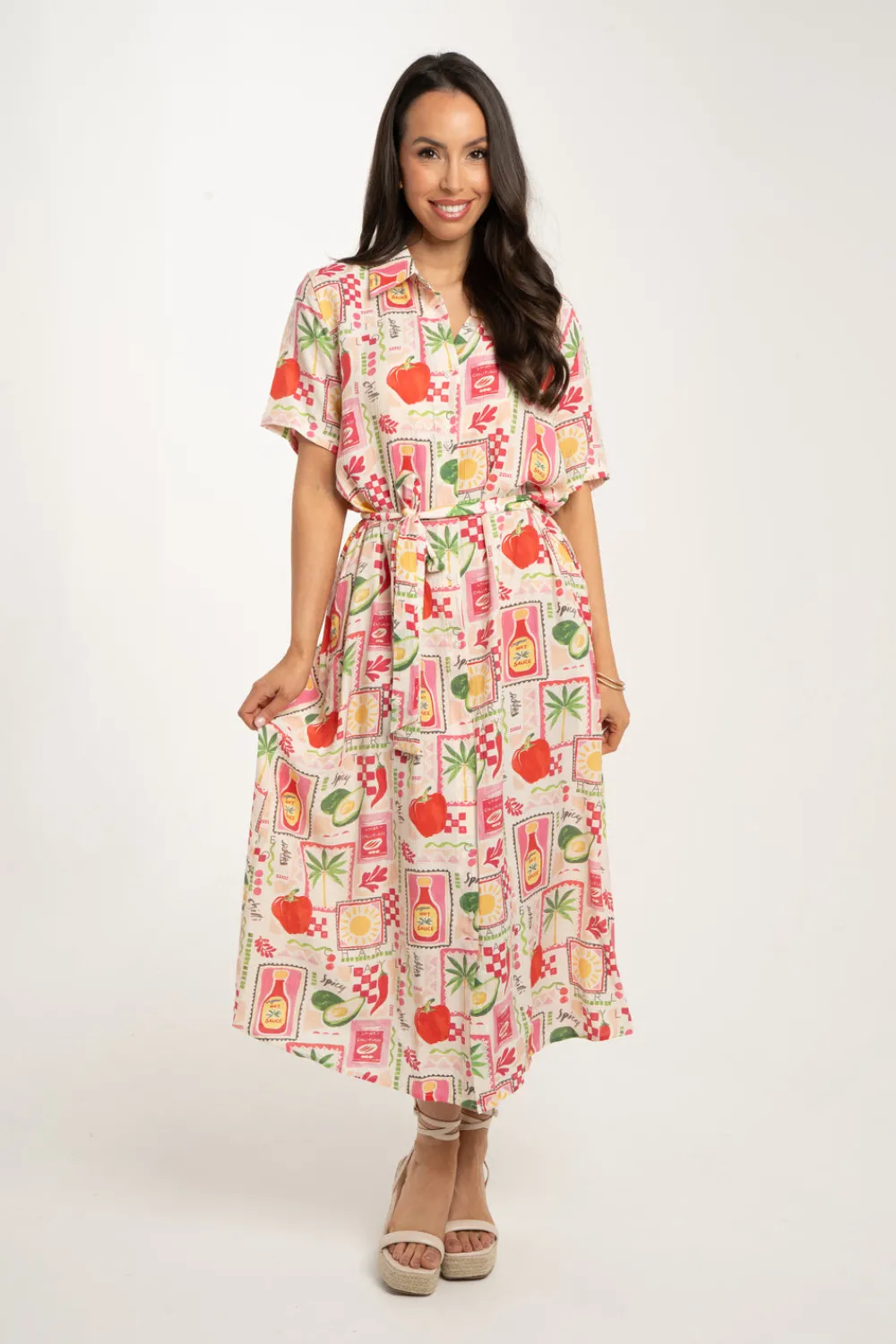 The Millie Multi Print Dress in Pink Mix is a versatile midi dress that offers effortless style and functionality. With a detachable tie belt and convenient pockets, this dress flatters all body shapes. The button front and vibrant pink mix multi print add a touch of playfulness to this must-have dress.