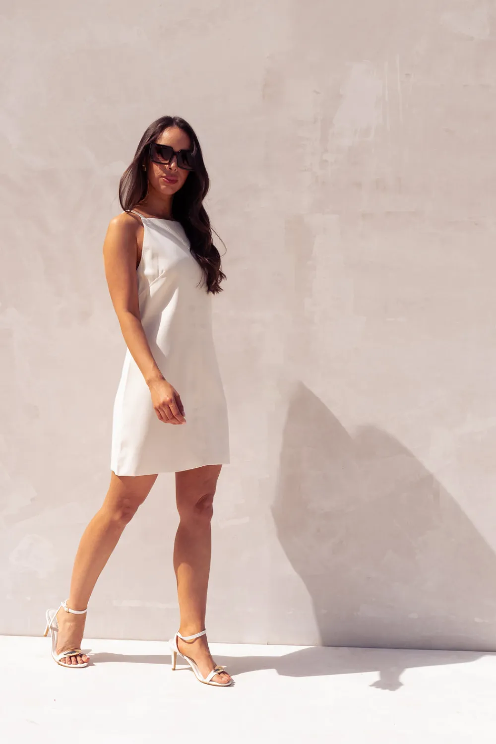 Effortlessly chic and versatile, the Kiera Strappy Dress in White is a must-have addition to your wardrobe. With a short length and sleeveless design, it’s perfect for any occasion. The back zip ensures a comfortable fit, while the high neck and fine straps add a touch of elegance. Elevate your style with this classic piece.
