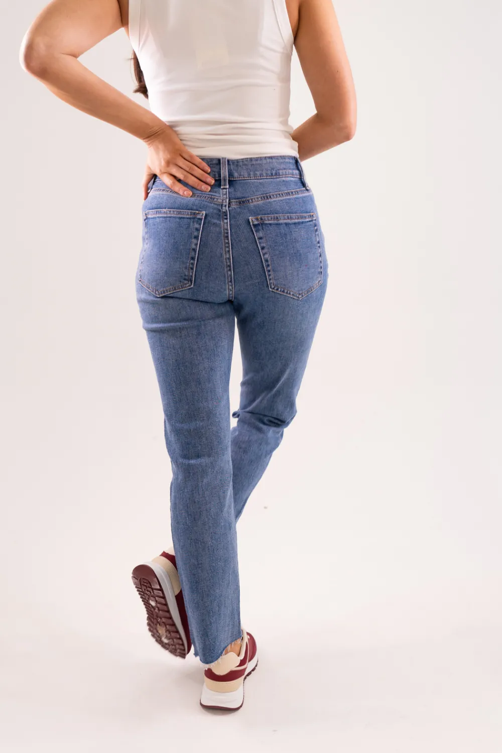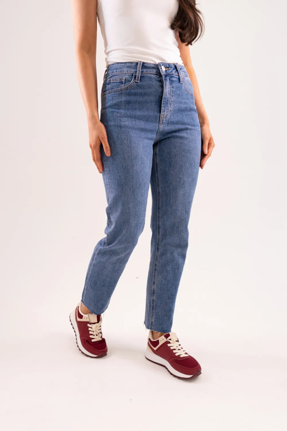 The Cindy Mom Jean in Mid Wash is the perfect combination of style and comfort. With its stretch fabric, high waist and frayed hem, it offers a flattering mom fit for all body types. Feel confident and trendy in this mid wash jean.