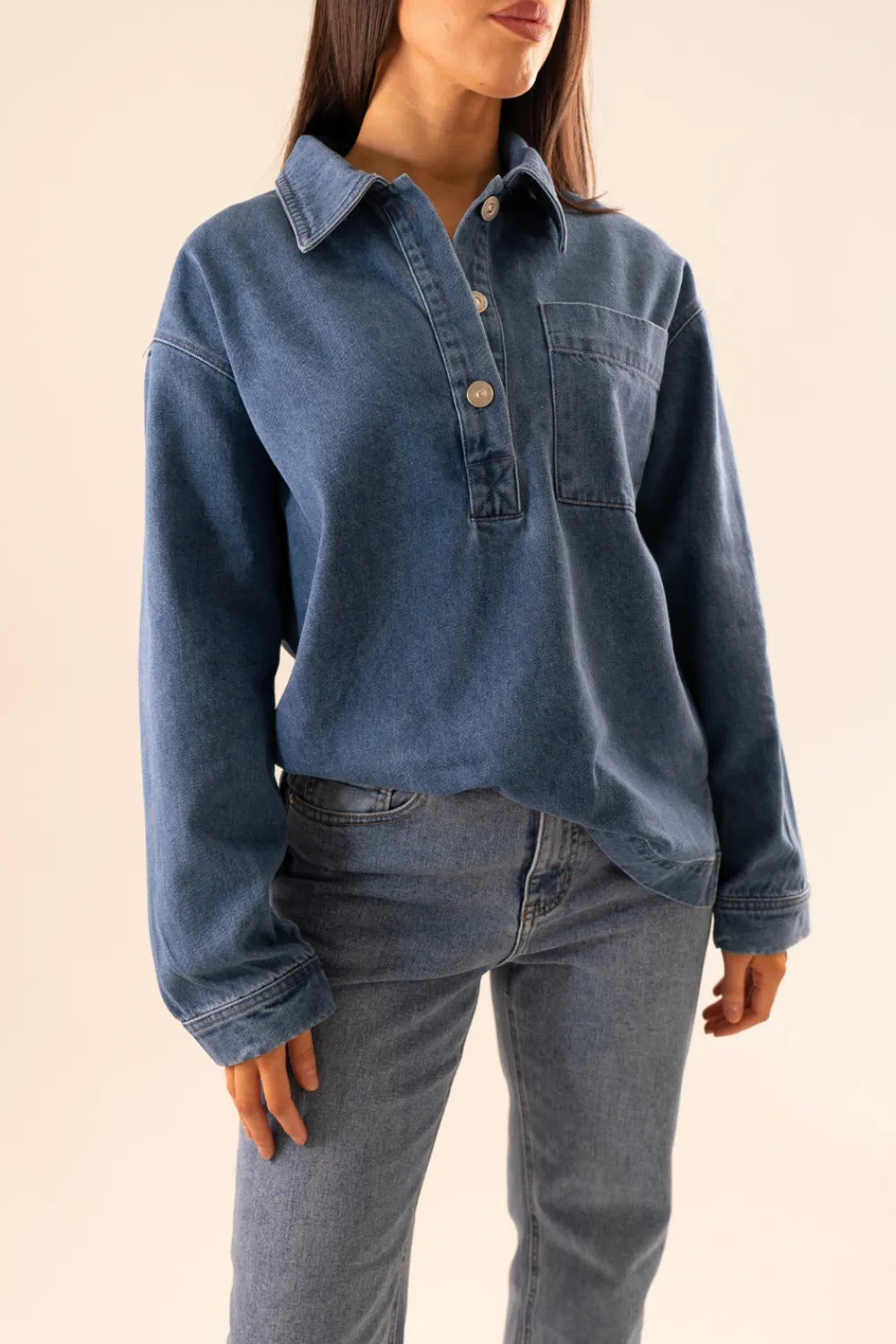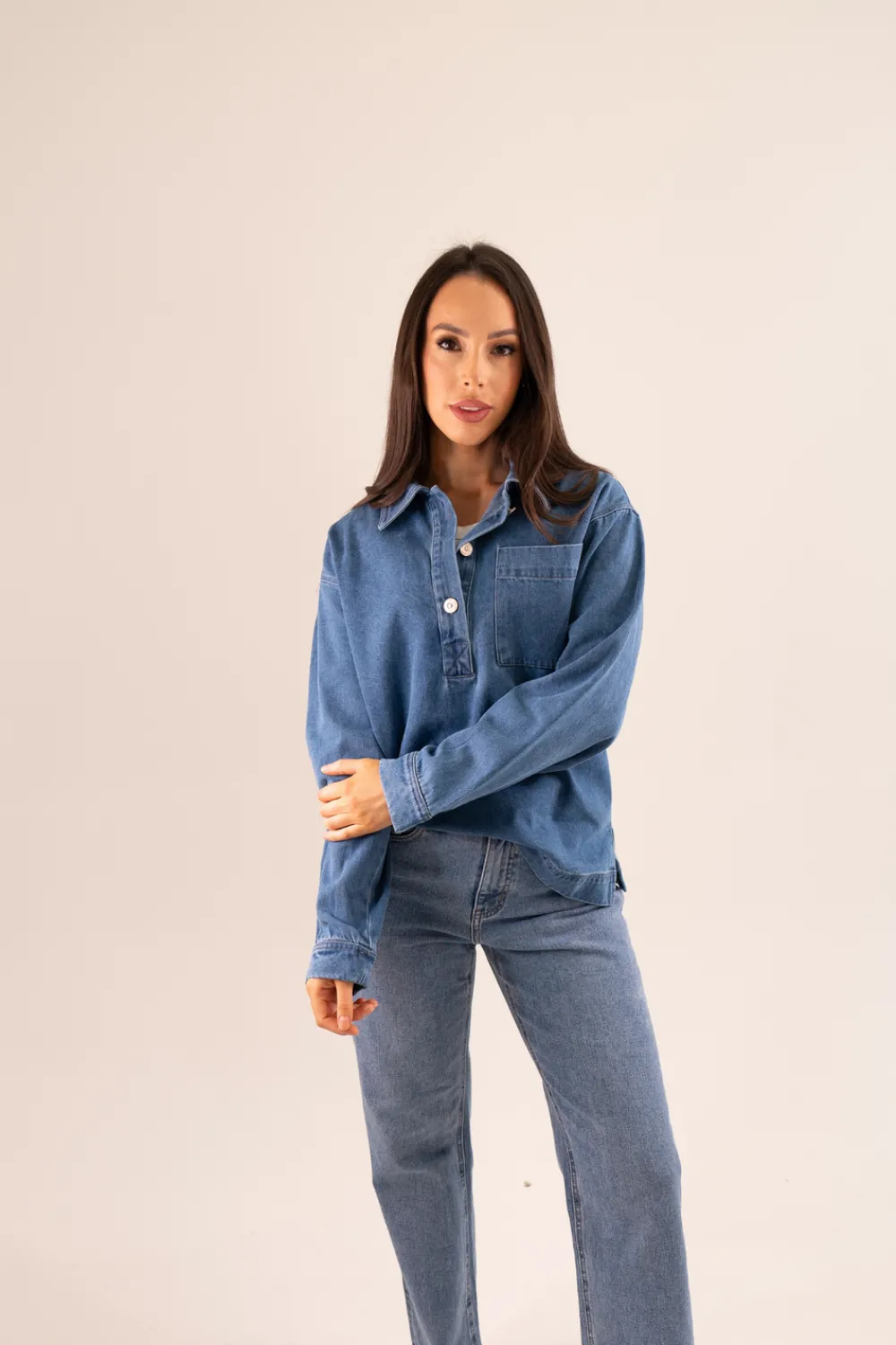 Expertly crafted with a light wash denim, the Caitlyn shirt boasts a classic long sleeve design with a stylish collar. The drop shoulder adds a touch of casual flair, while the button detail front and pocket provide both convenience and style.