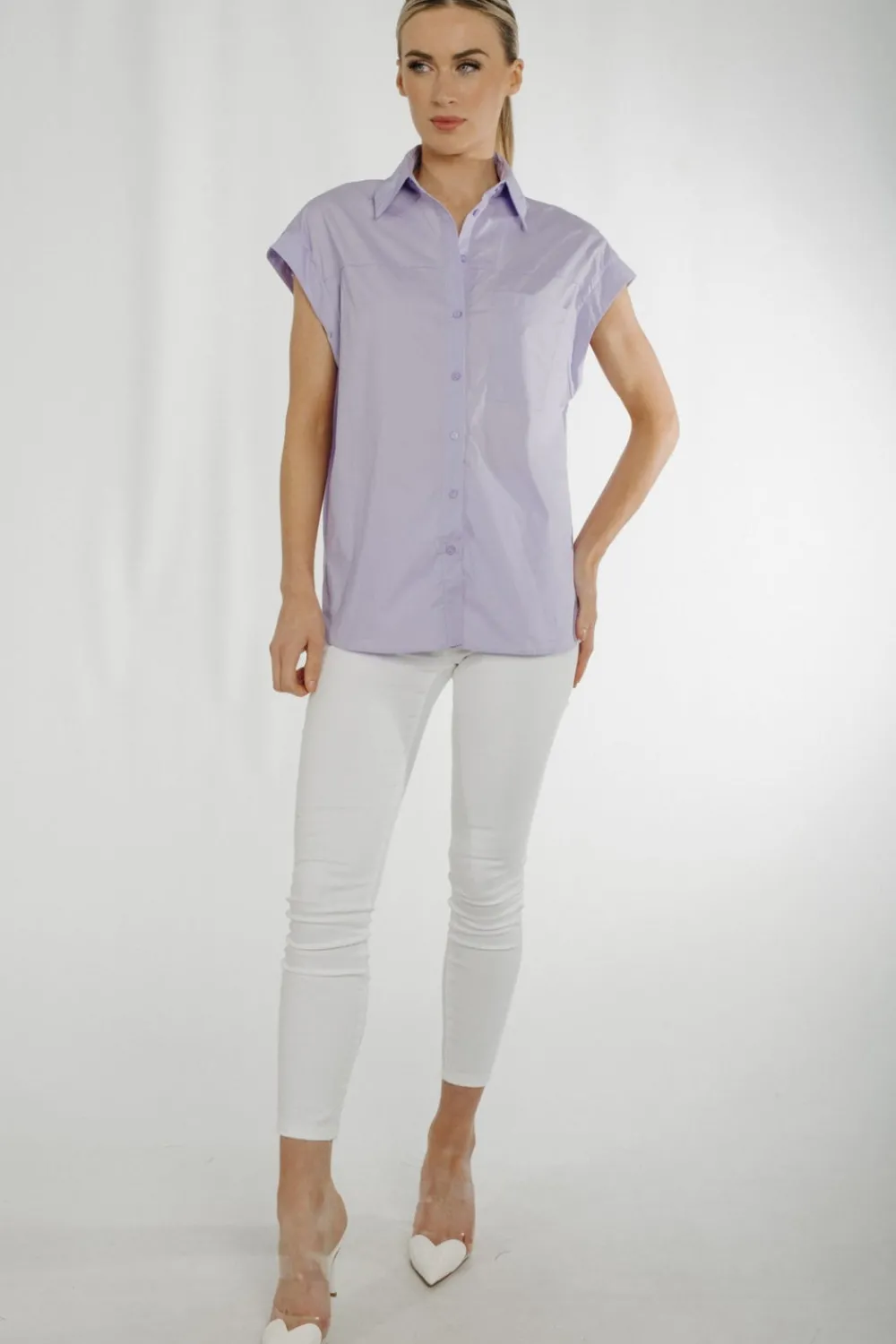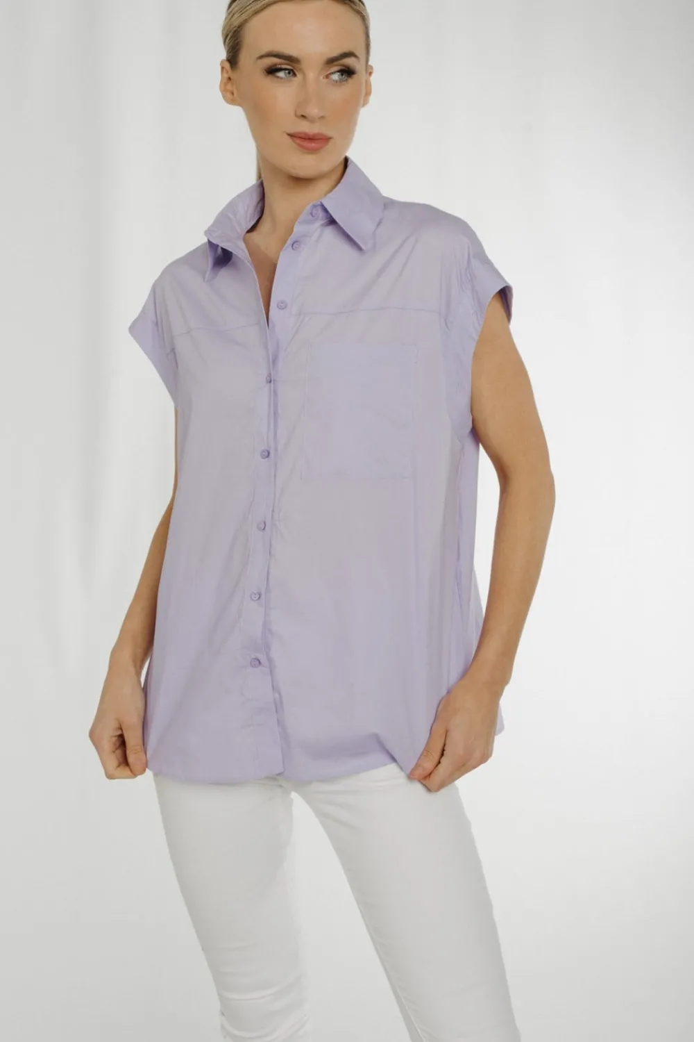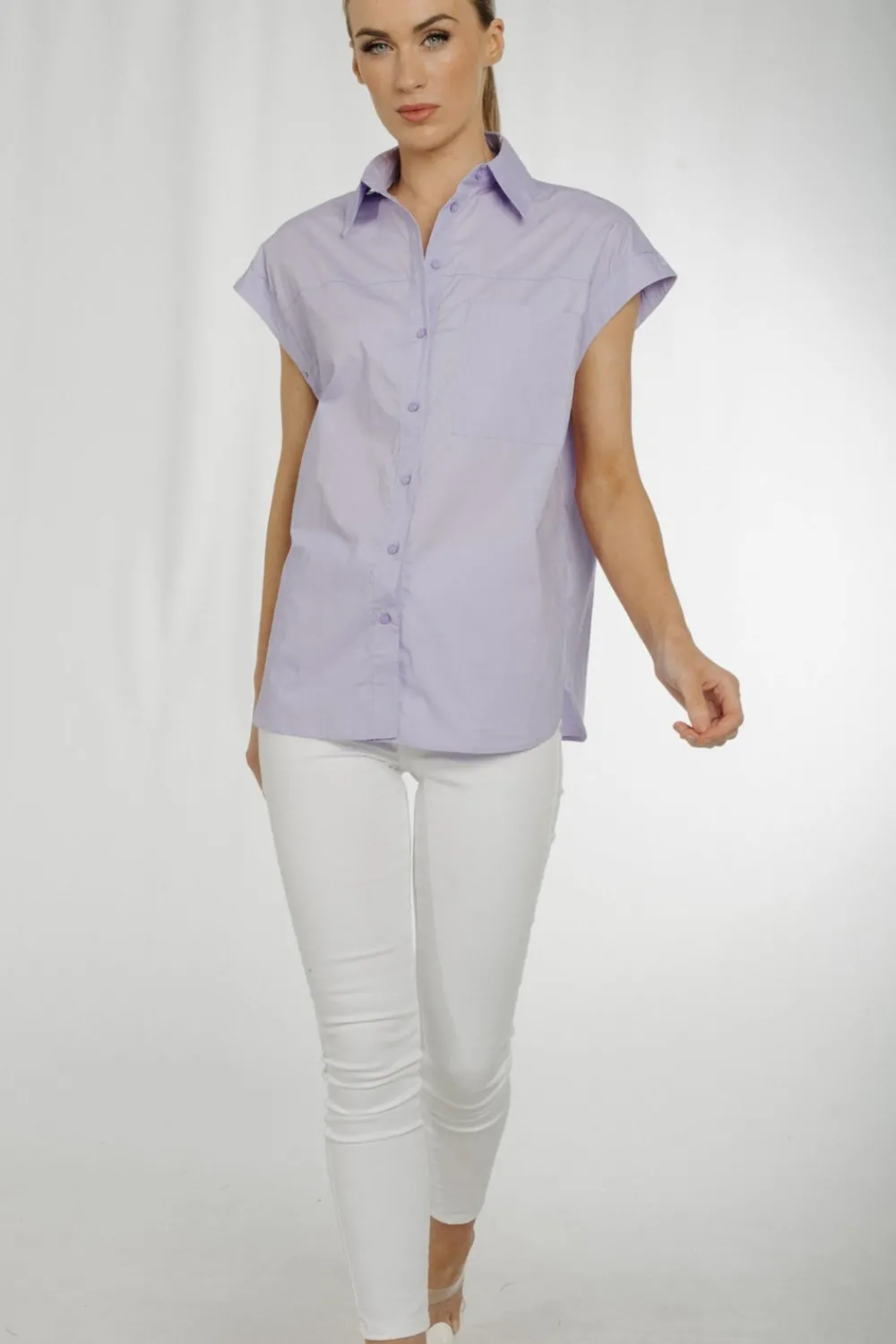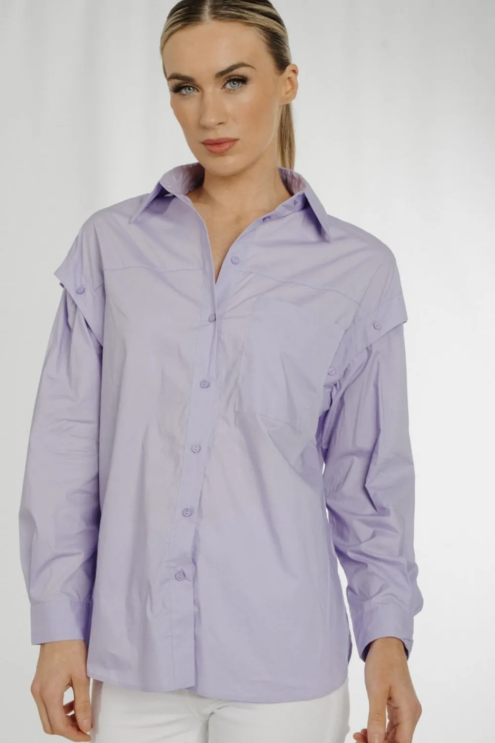 Detachable Sleeve LilacButton Front Front Pocket Oversized Fit