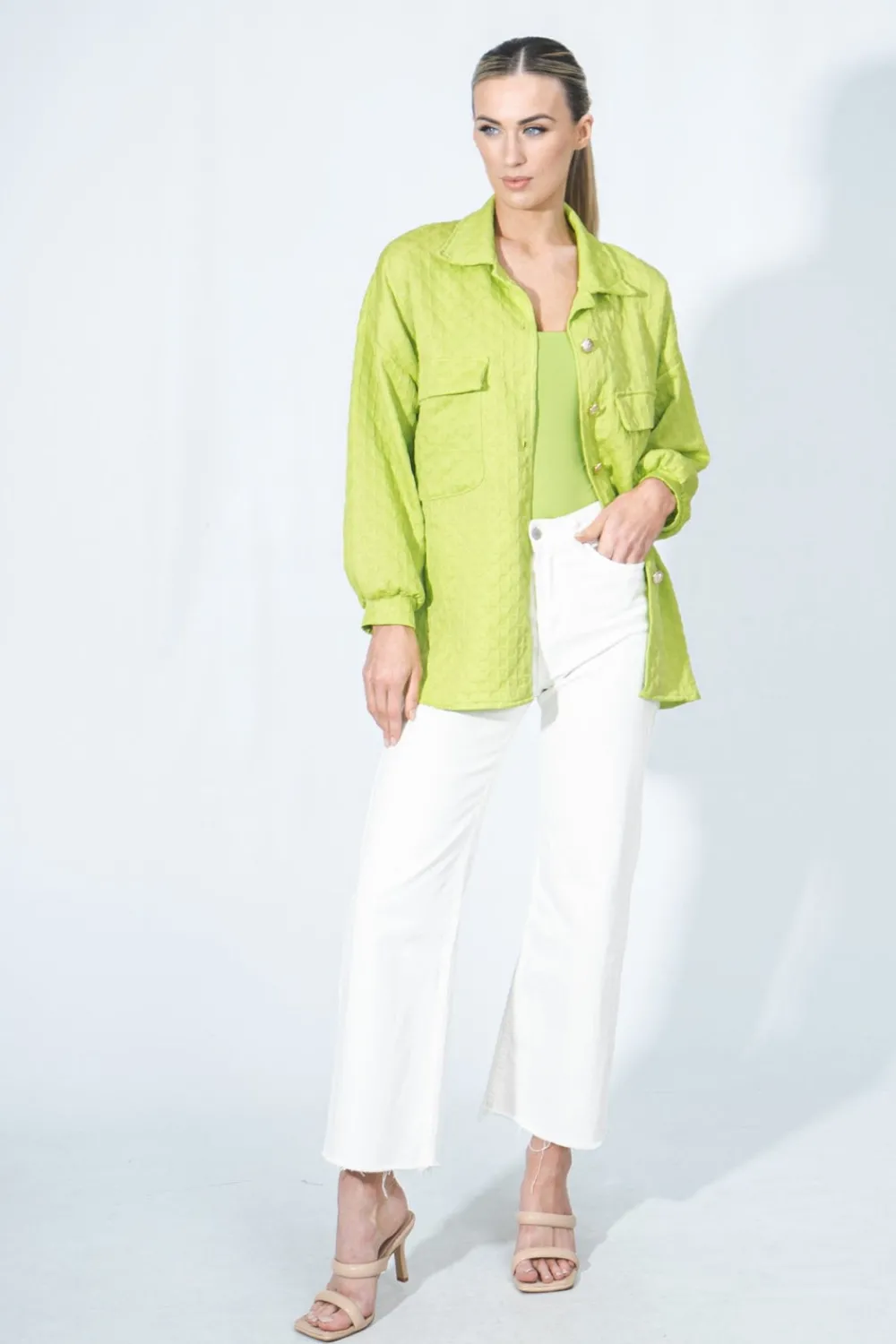 GreenBodysuitSnap Button Fastening Square Neck