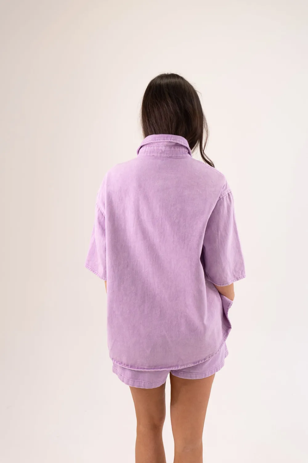 Expertly crafted with a stylish collar and button front, this Kiera Denim Shirt in Lilac is a must-have for any fashion-forward individual. Made from high-quality lilac denim, the short sleeve shirt also features a convenient front pocket for added practicality. Looking for a complete outfit? Check out our matching shorts!