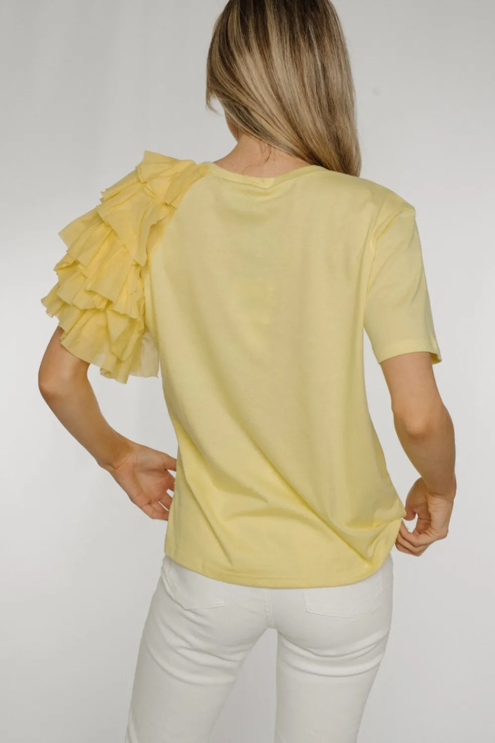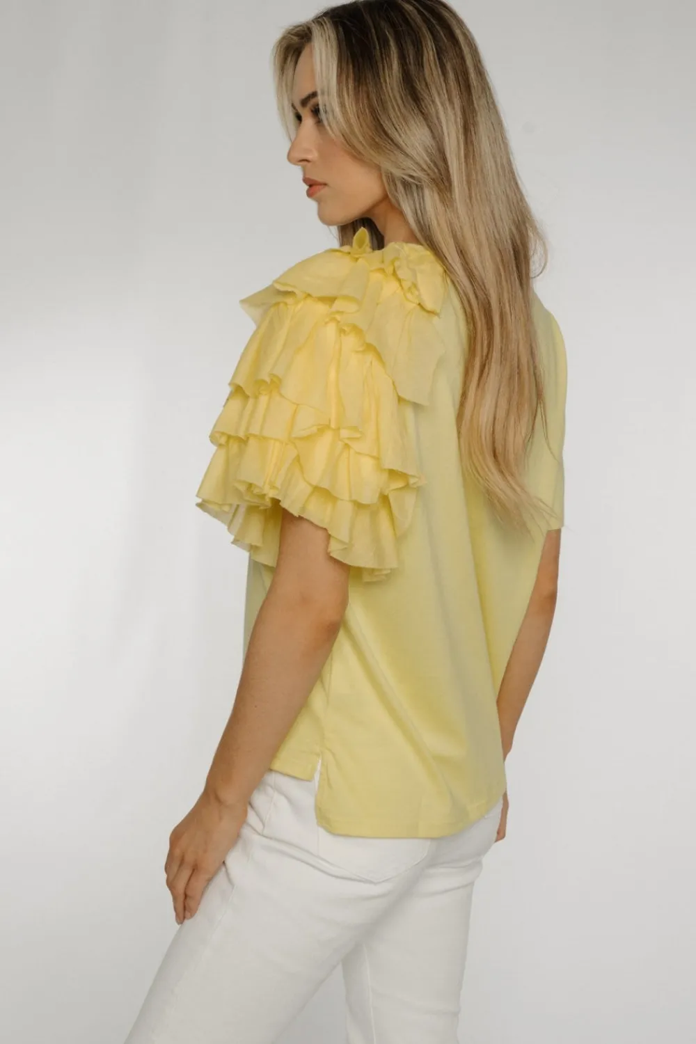 Frill ShoulderT-Shirt Vibrant yellowRound Neckline