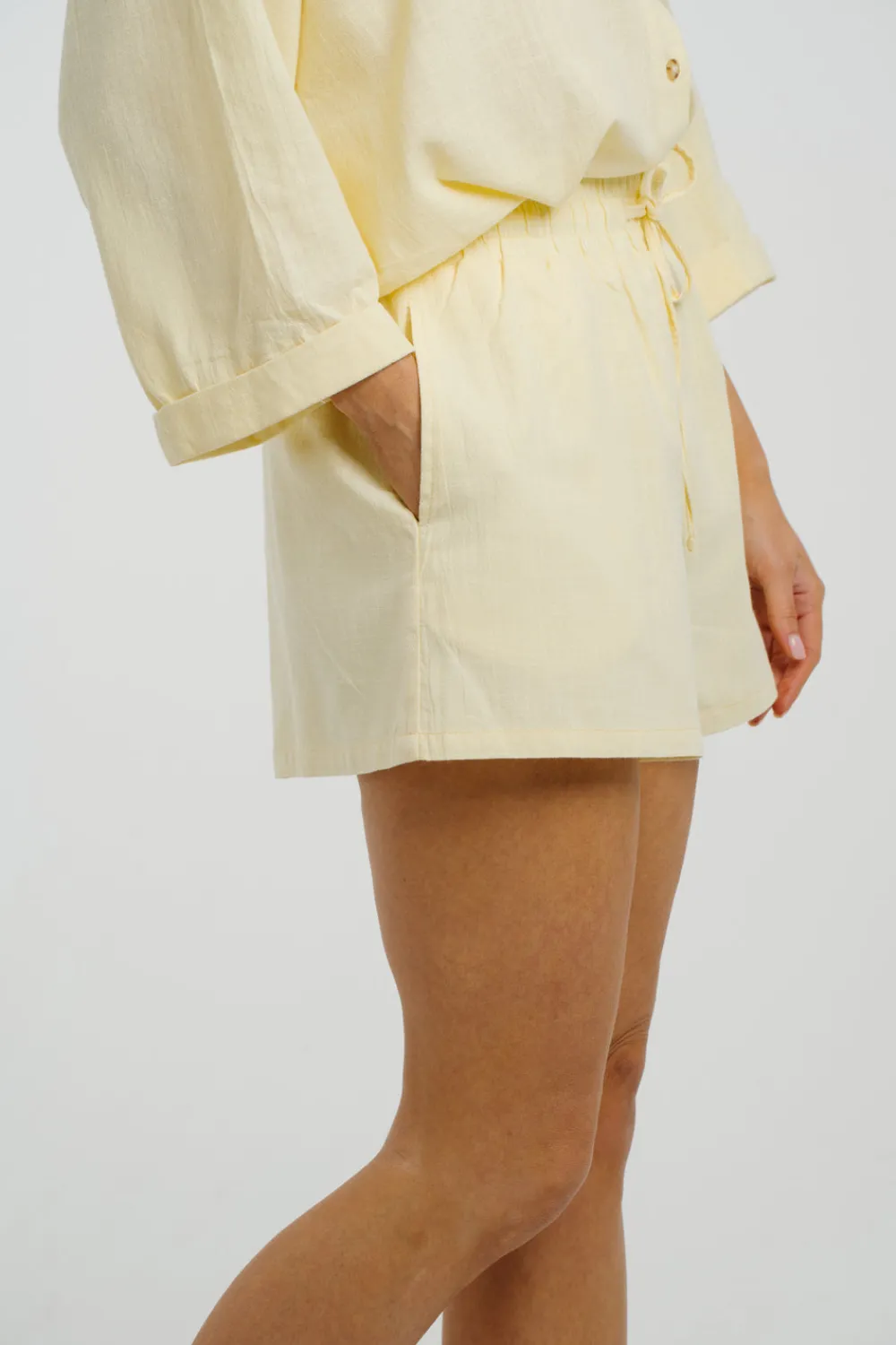 The Iris Shorts in Yellow offer a stylish and versatile addition to your wardrobe. With an elasticated, drawstring waist and high-waisted design, these shorts provide a comfortable and flattering fit. Complete with pockets for added convenience and a matching shirt available, these yellow shorts are a must-have for any fashion-forward individual.
