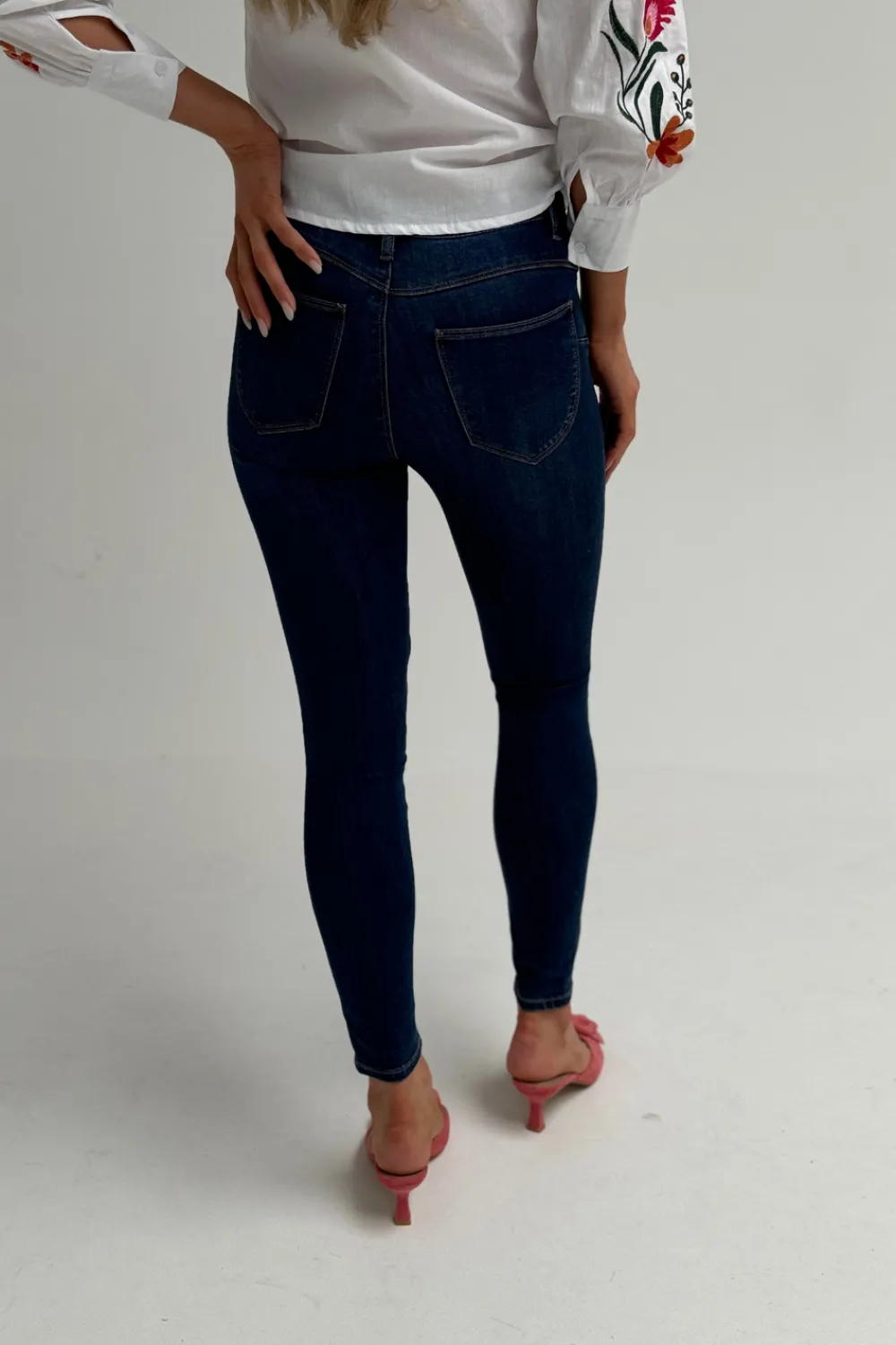 The Cindy Bum Lift Skinny Jean in Mid Wash enhances your curves with a mid to high waist and bum lift technology. Featuring front and back pockets, this skinny fit jean in a mid wash is perfect for both style and comfort.
