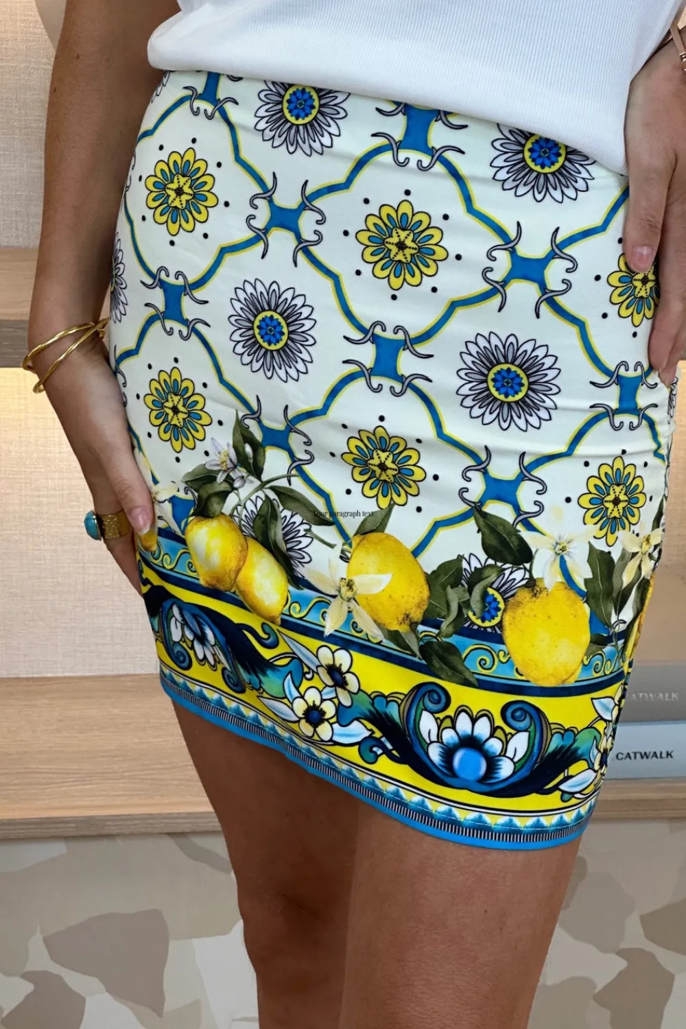 Mini Skirt White Mix Printed Back Zip