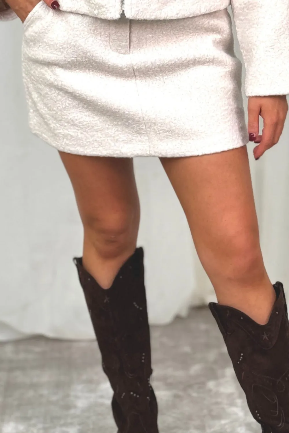 This Daisy Textured Mini Skirt in Grey is the perfect addition to your wardrobe. With a button waist and pockets, it offers both style and functionality. The mini length adds a trendy touch, while the textured fabric adds visual interest. Pair it with the matching jacket for a complete and polished look.