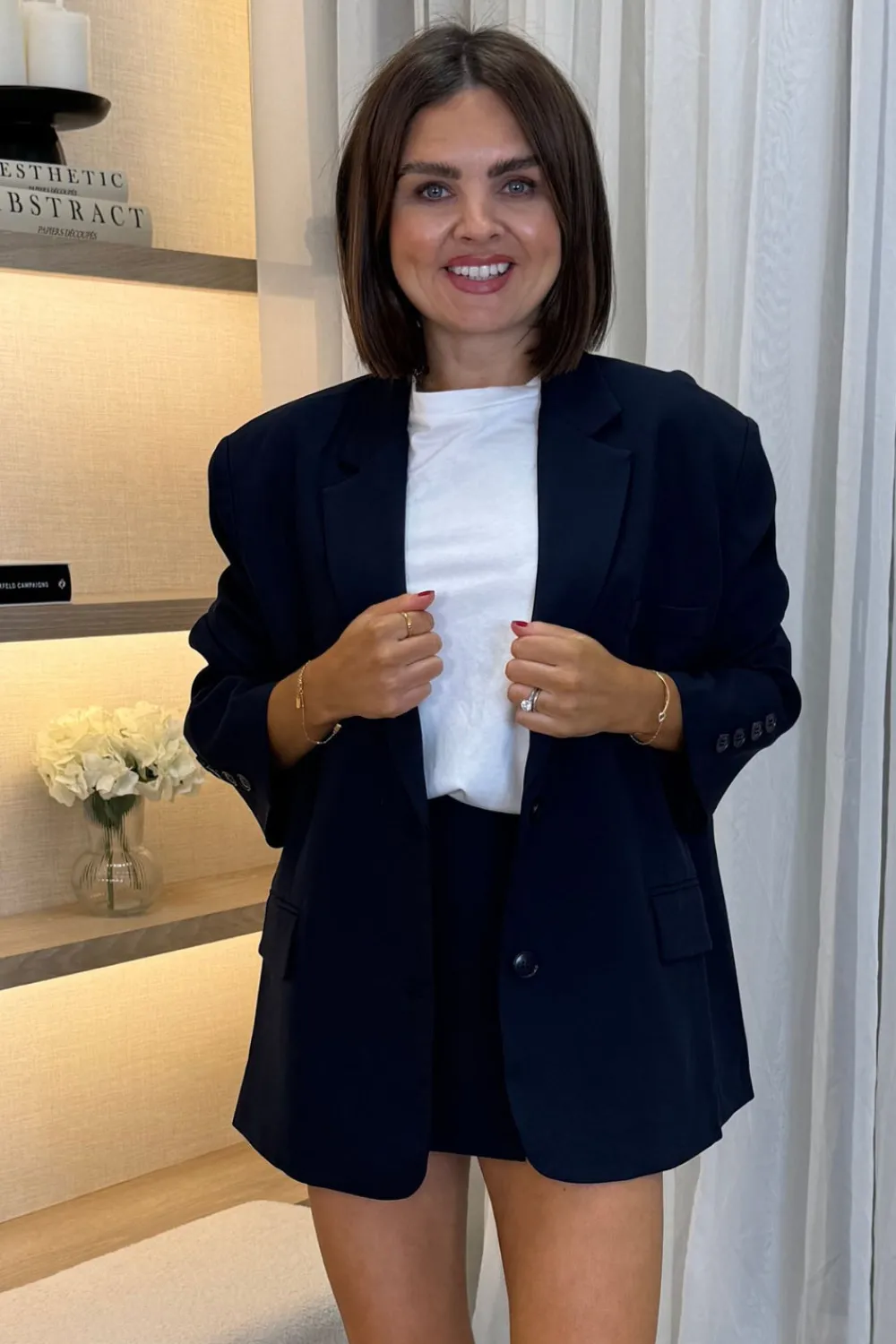 This Erica skort in navy is a versatile piece that combines the comfort of shorts with the sophistication of a skirt. Its zip closure provides a secure fit, while the split detail hem adds a touch of style. Complete the look with the matching blazer for a polished and put-together ensemble. Perfect for any occasion.
