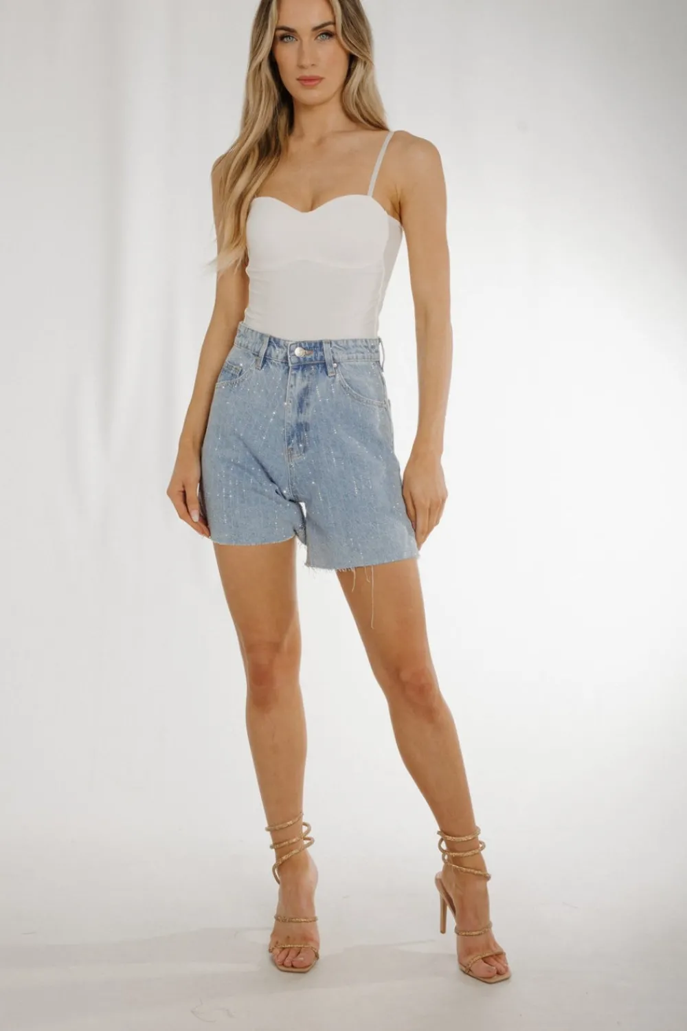 Mom Style Shorts Embellished diamanté detailFreyed HemBelt Loops