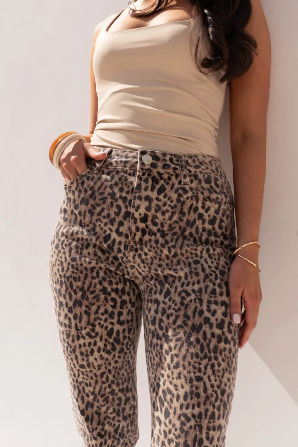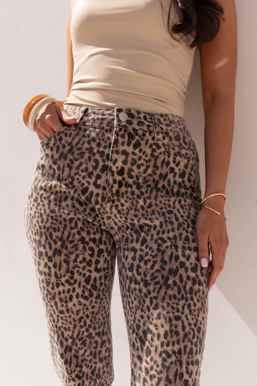 The Lynne Mom Jeans combine classic high-waisted silhouette with bold leopard print for a statement piece that doesn’t sacrifice comfort. Featuring practical pockets and a secure zip and button closure, these jeans offer the perfect amount of stretch for all-day wear. The versatile mom-style cut flatters your figure while adding an edgy touch to your wardrobe.