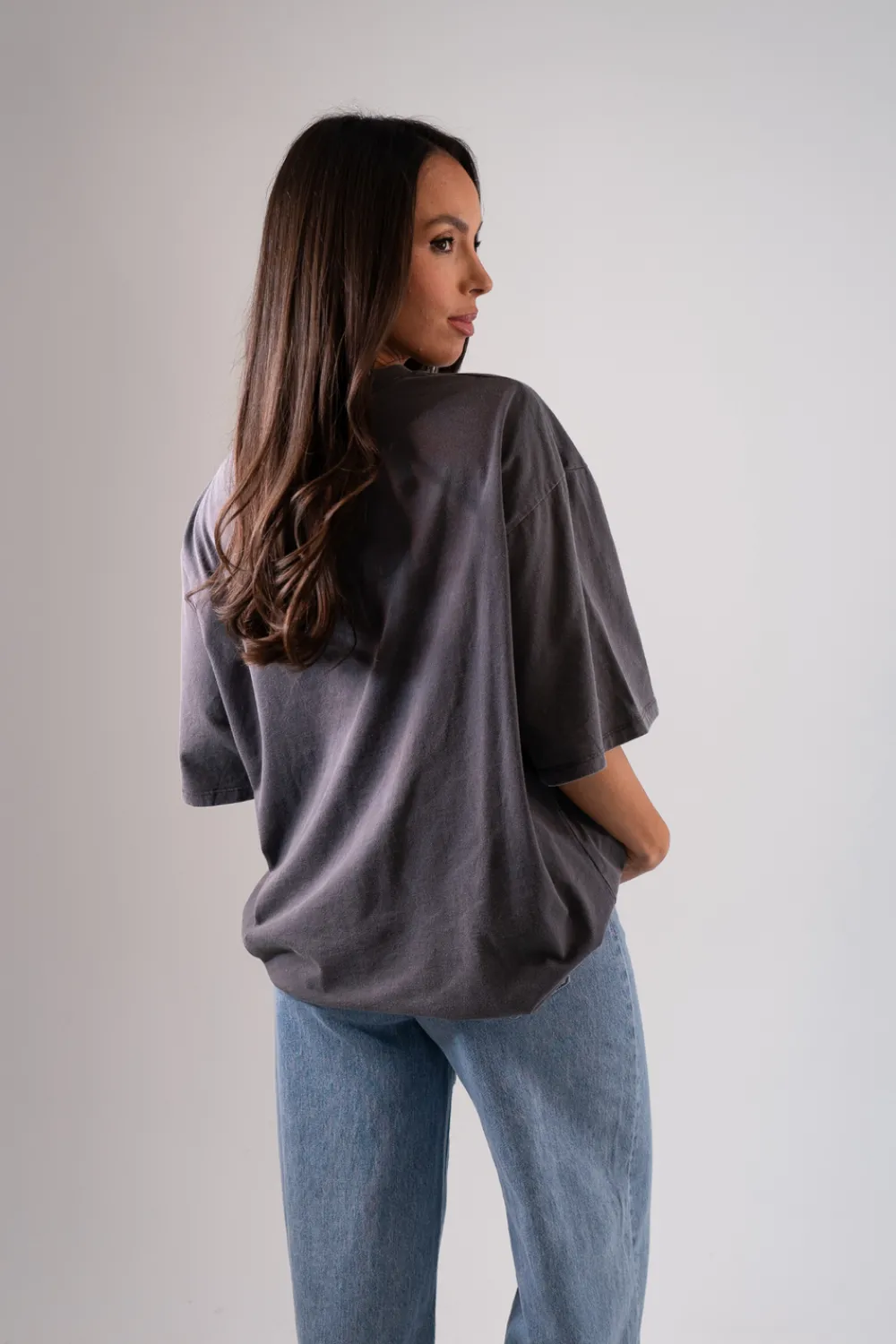 Featuring a relaxed fit, round neck, and short sleeves, the Taylor Oversized T-Shirt in charcoal offers both comfort and style. The drop shoulder design adds a modern touch while the cotton fabric ensures maximum breathability.