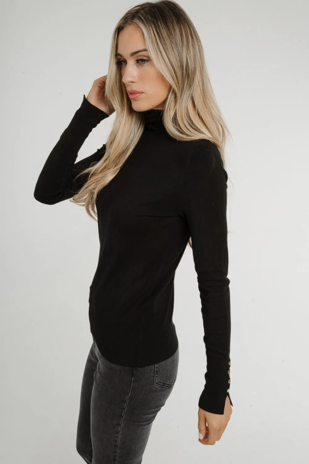 Polo Neck One SizeFine KnitGold Button Cuffs