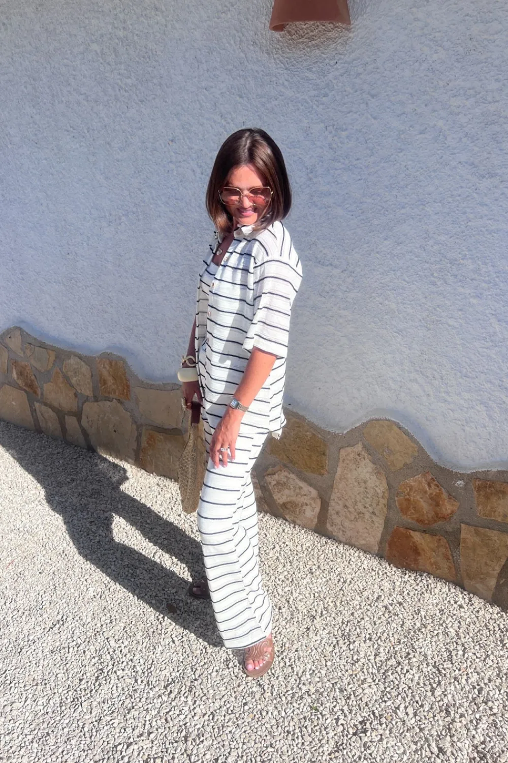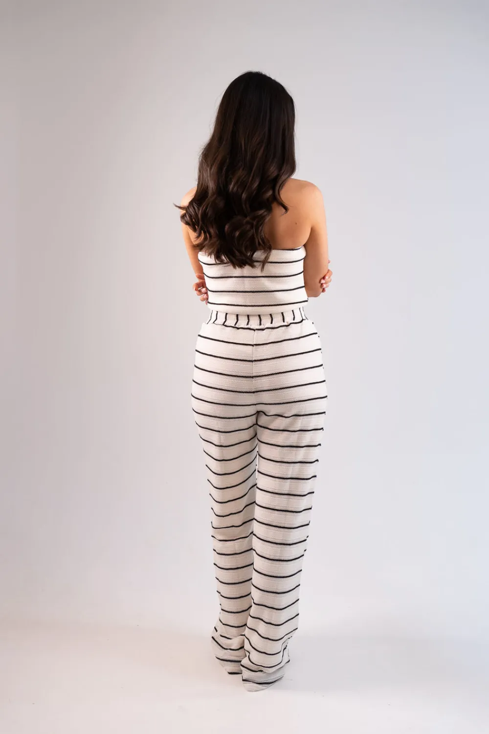 Crafted with precision and expertise, the Erica Crochet Trousers In Mono Stripe offer a timeless and elegant look. The black and white stripes add a classic touch, while the high waist and straight leg design flatter the silhouette. Complete the ensemble with the matching shirt and top for a cohesive and polished outfit.