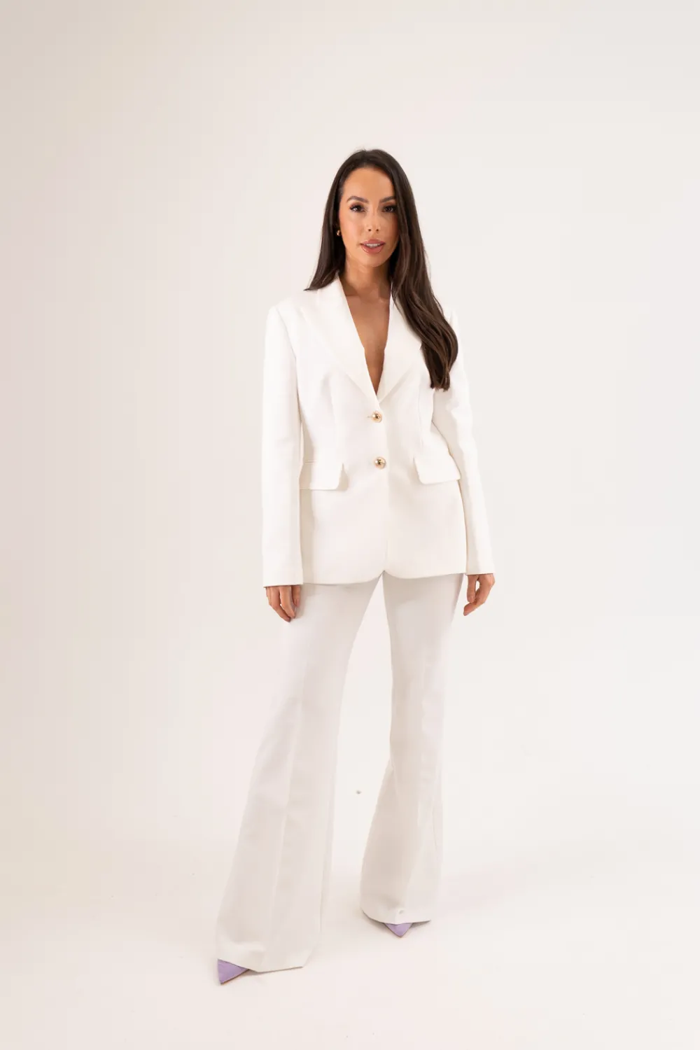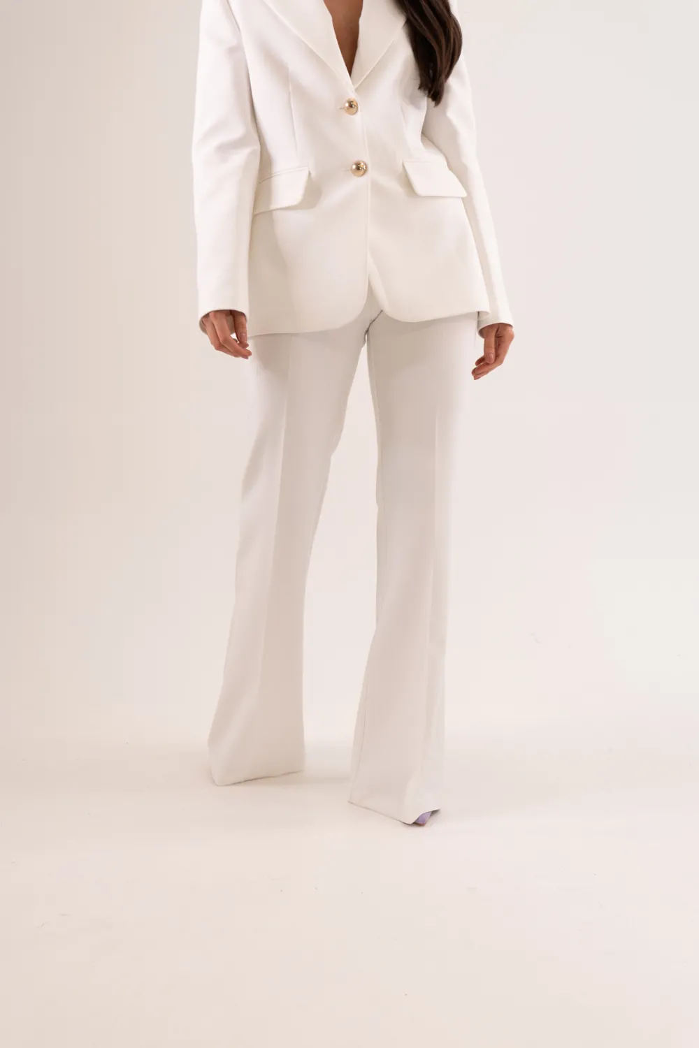 Expertly tailored with a high waist and wide leg, the Eva Trouser boasts both style and comfort. Complete with pockets for an added touch of functionality, it is the perfect combination of fashion and practicality. Match it with the coordinating blazer for a polished and professional look.