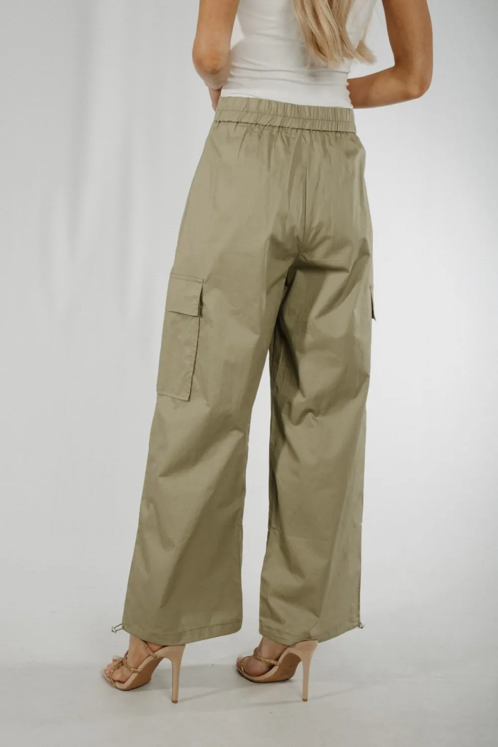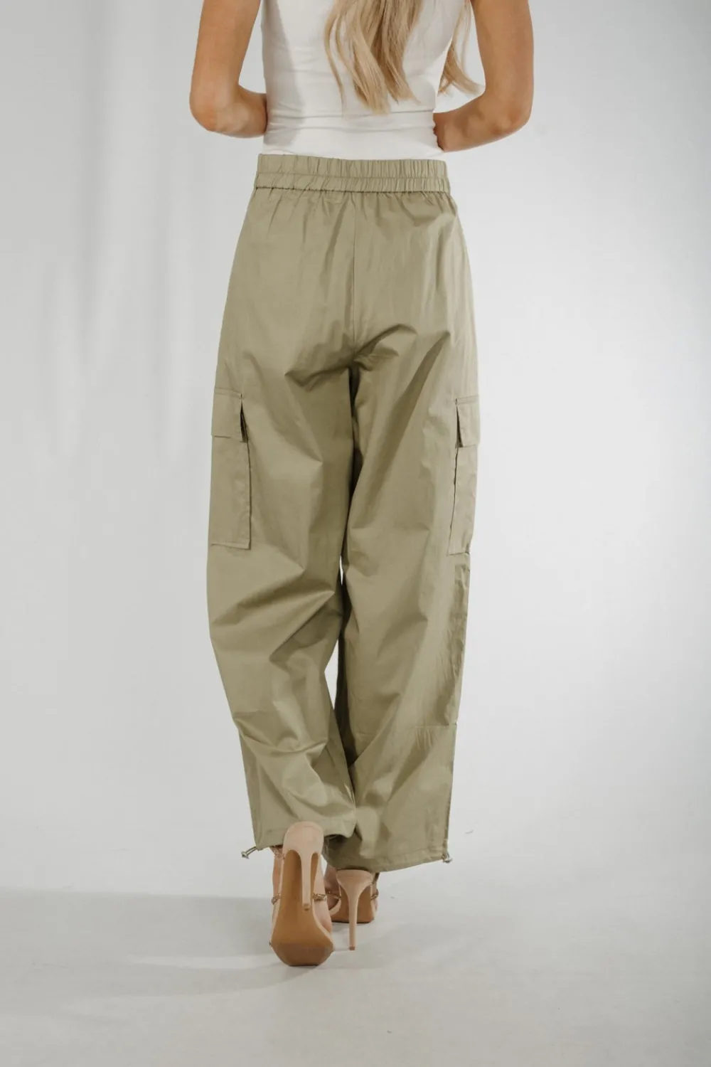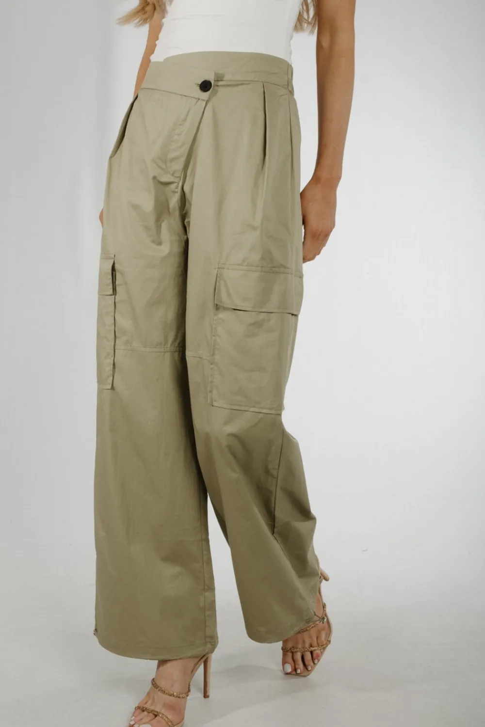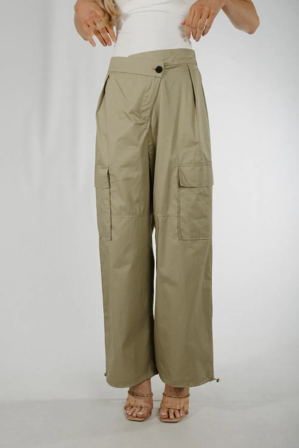 Elasticated Waist Asymmetric Button Detail Khaki Drawstring Cuff Detail Cargo Style Pockets …
