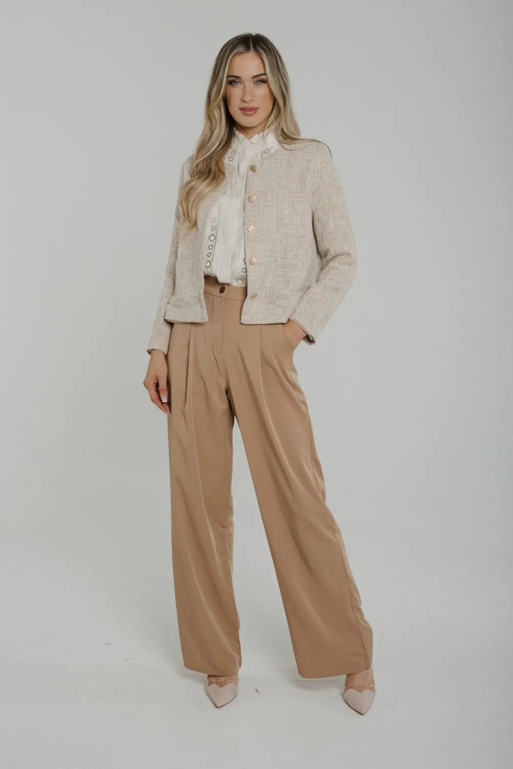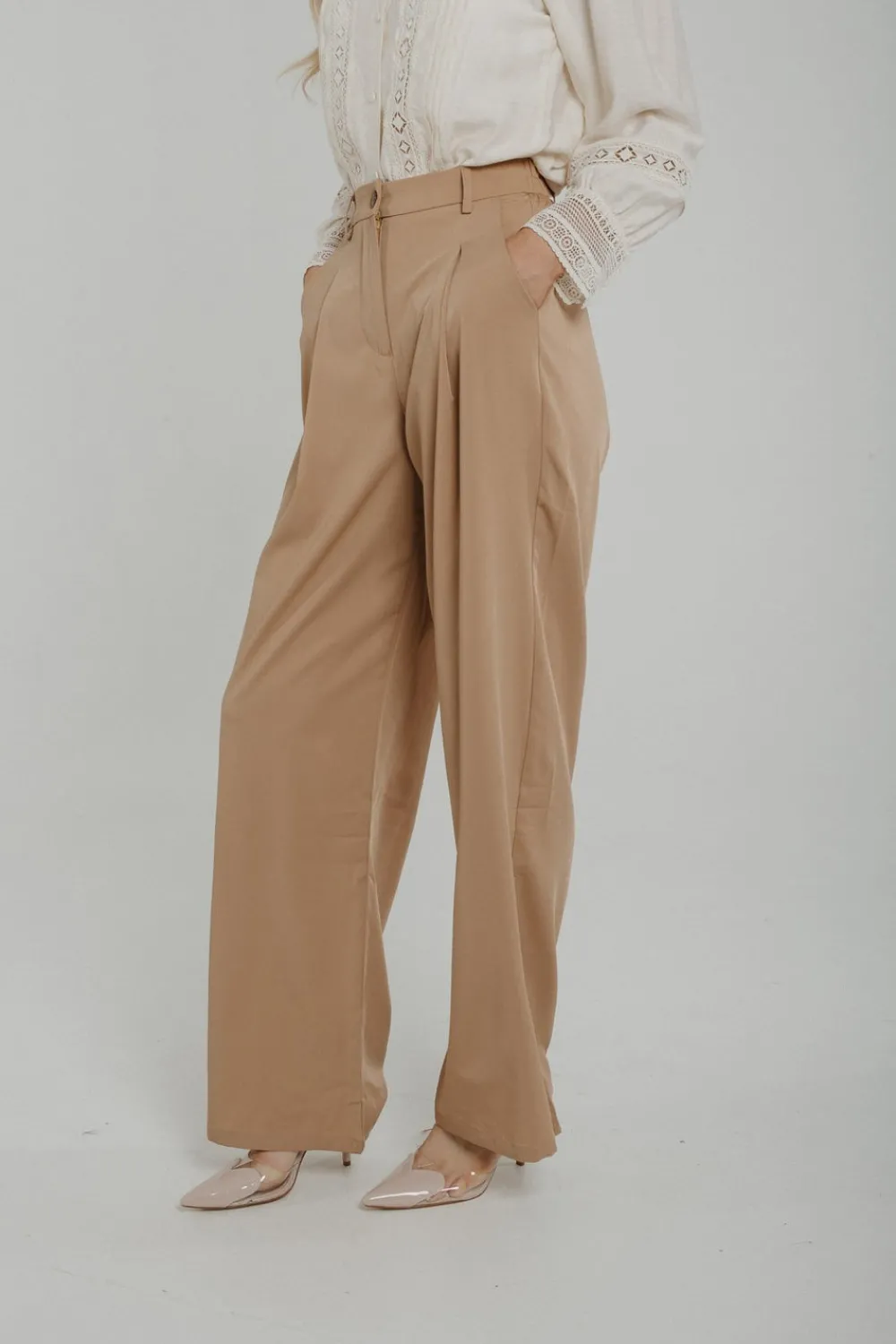 A wide leg trouser to see you through the season, high waisted with pockets in a rich camel tone.