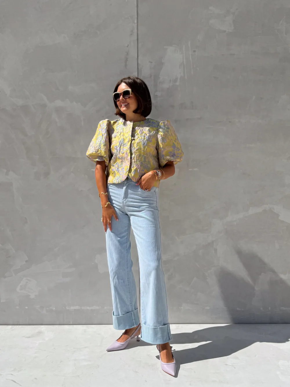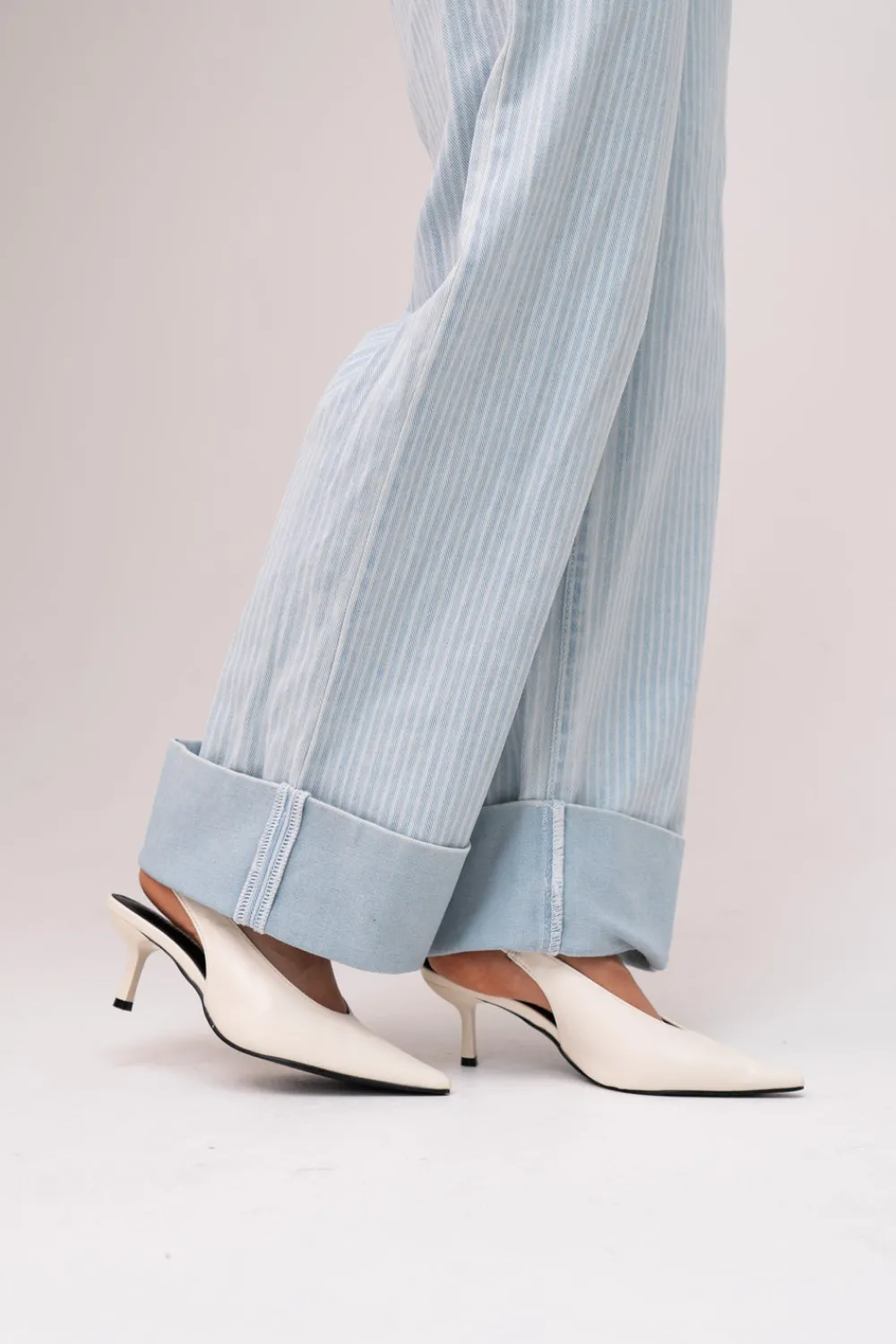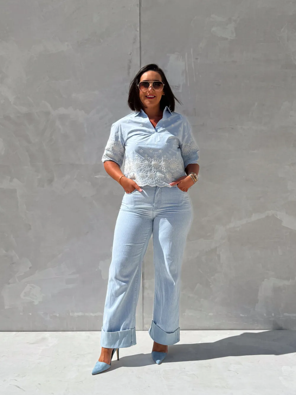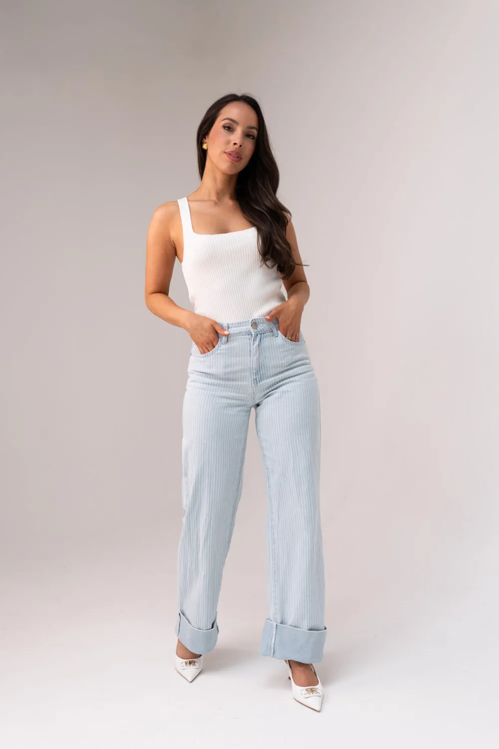 Expertly crafted for comfort and style, our Love Laura Summer Turn Up In Pinstripe feature a high waist and lightweight cotton fabric. The light wash and pinstripe design add a touch of sophistication, while the turn up hem and zip & button waist provide a perfect fit. Elevate your summer wardrobe.