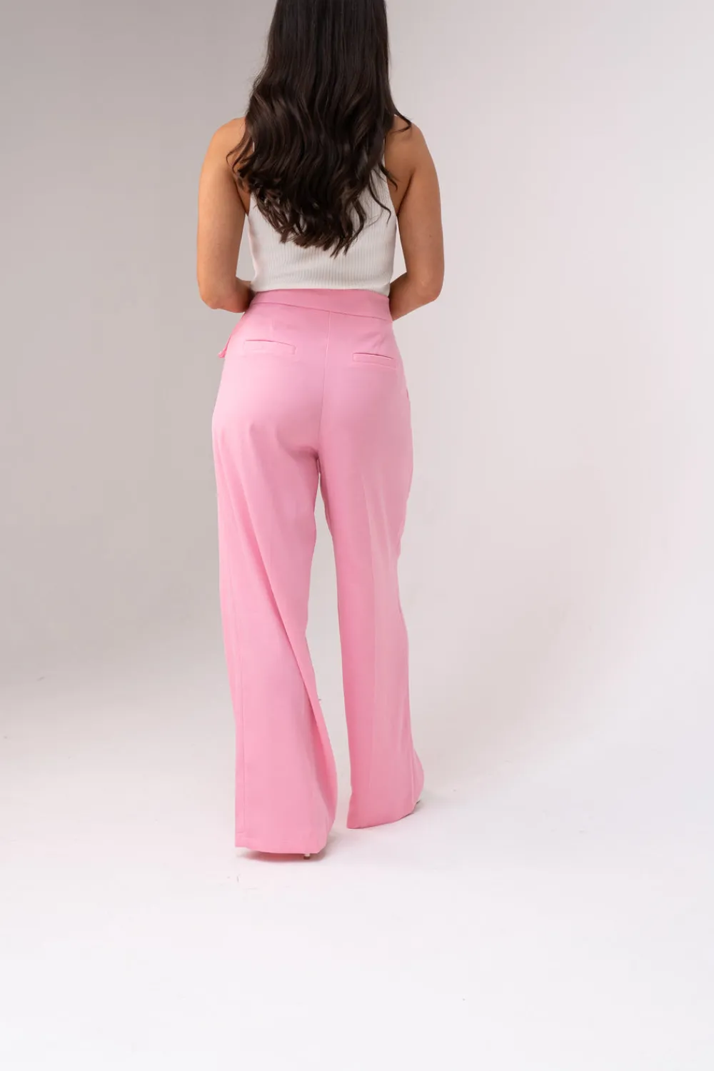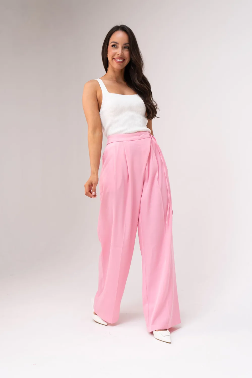 Effortlessly stylish, the Willow Tie Waist Trousers in Pink offer a high waist and straight leg for a comfortable fit. With added pockets and a tie detail waist, these trousers not only provide functionality but also a touch of femininity. Made of stretch fabric, they provide both comfort and style.
