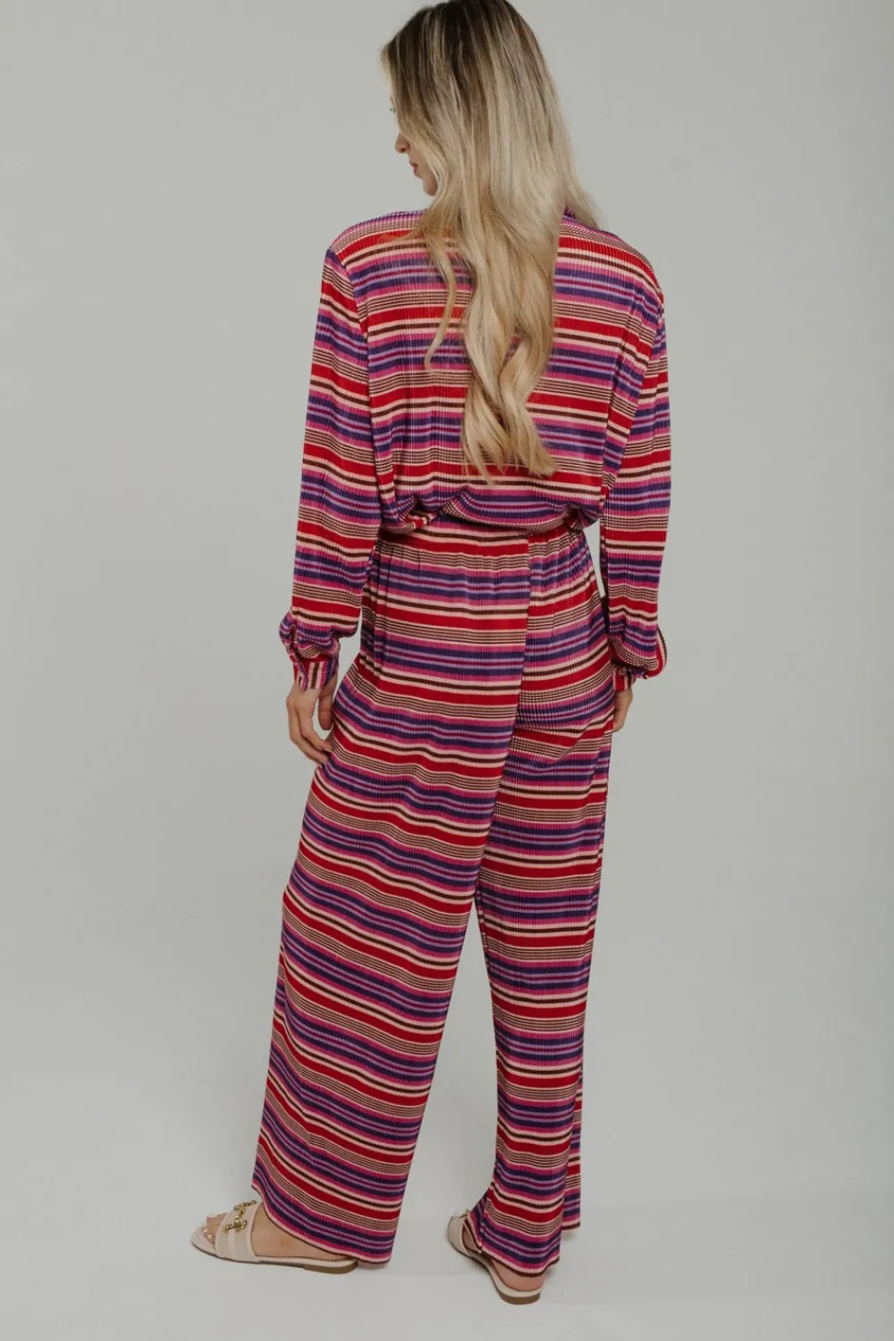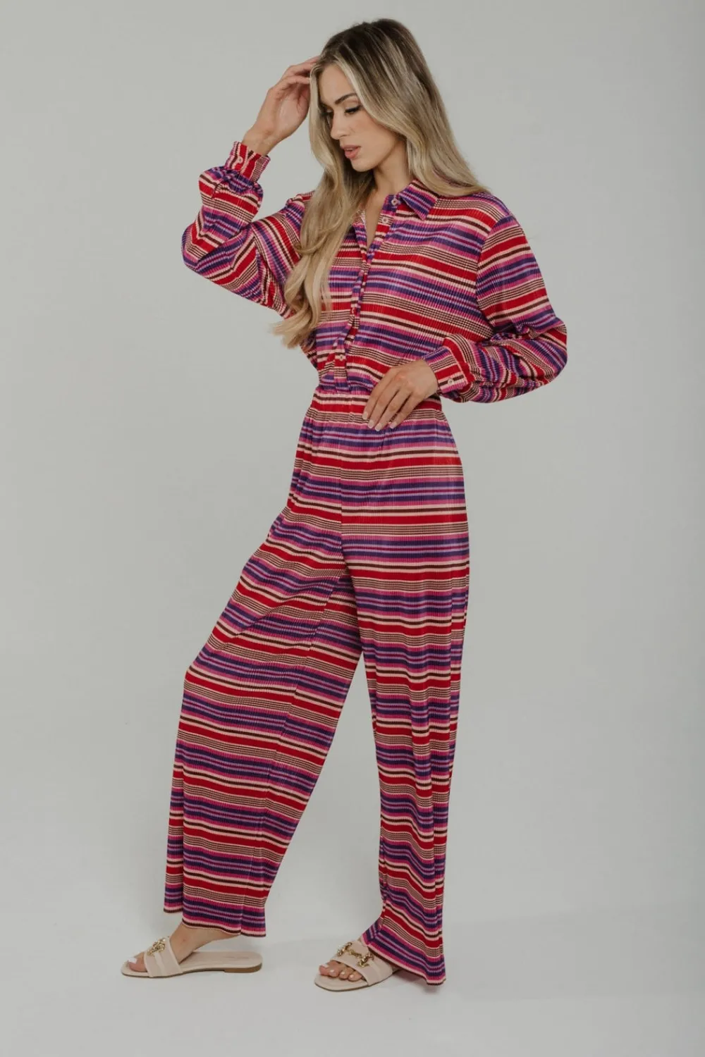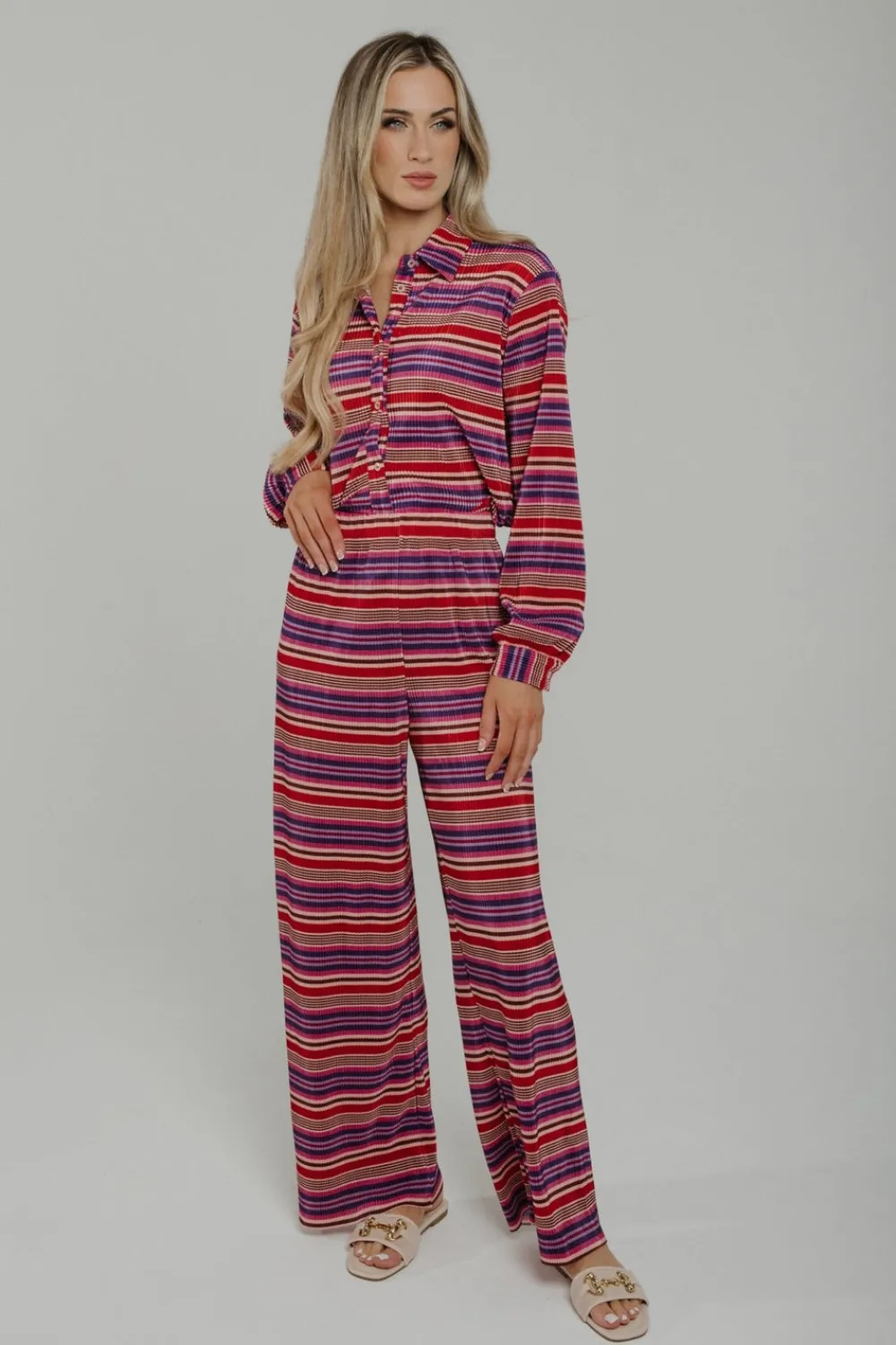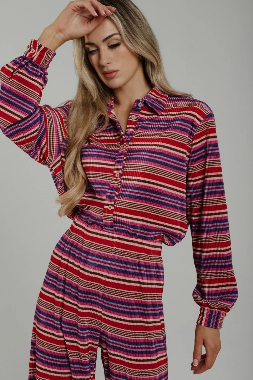 Crepe Shirt & Wide Leg Trousers Purple Mix Elasticated Waist