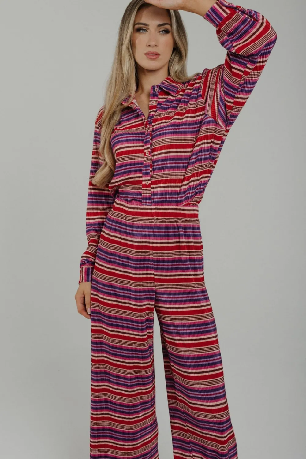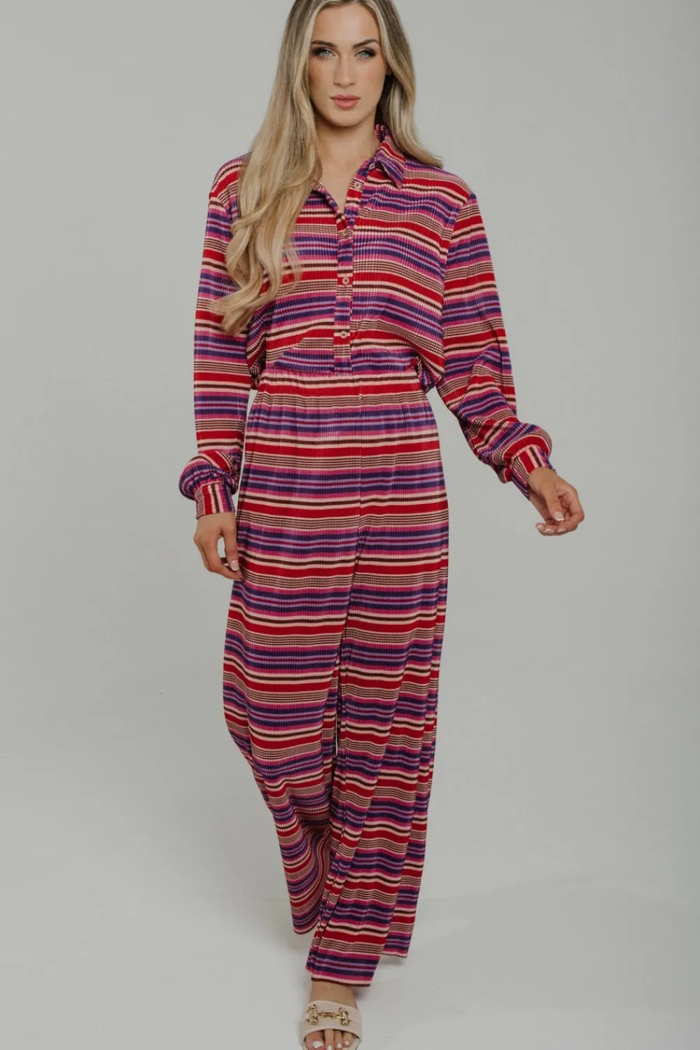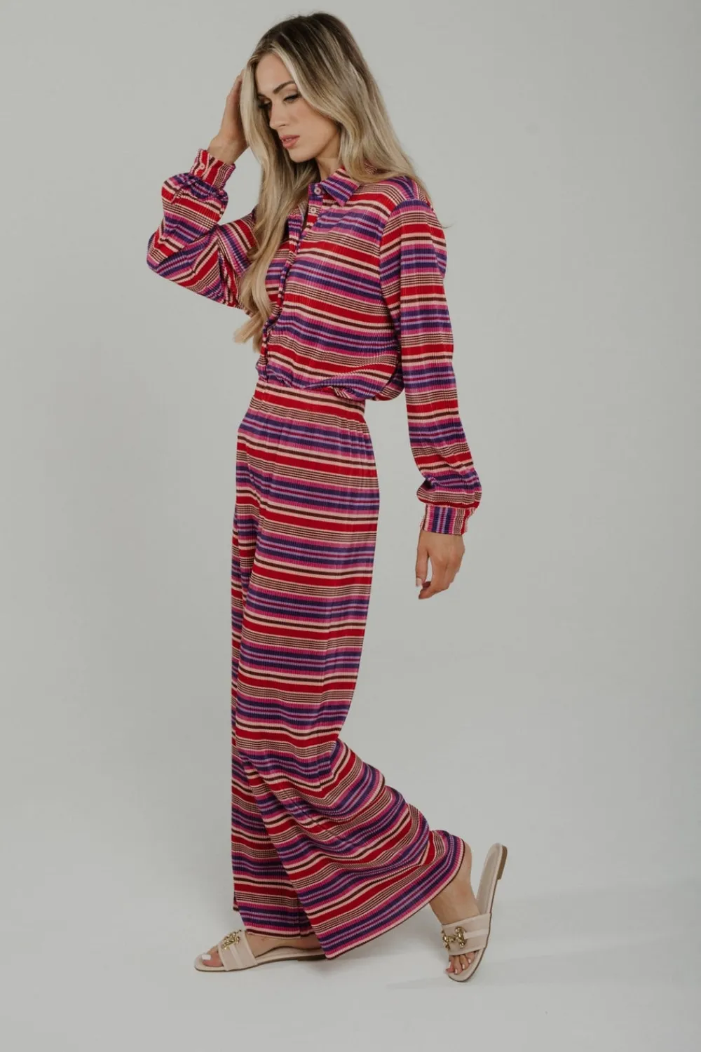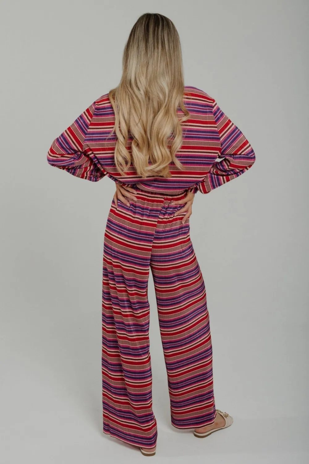 Crepe Shirt & Wide Leg Trousers Purple Mix Elasticated Waist
